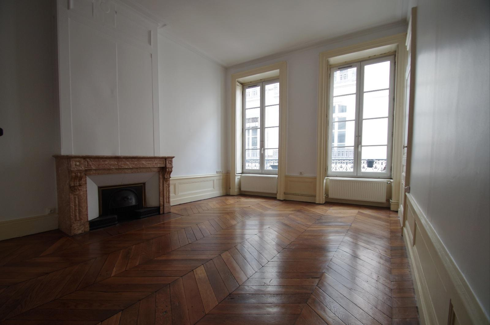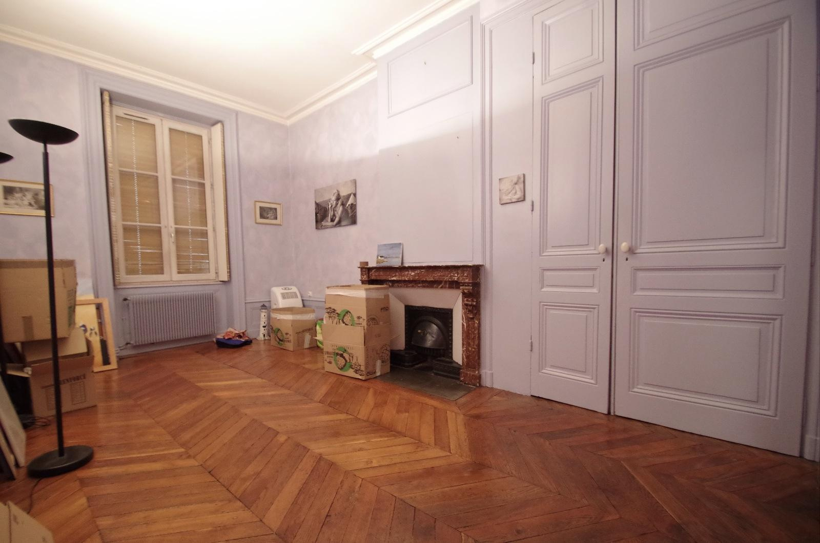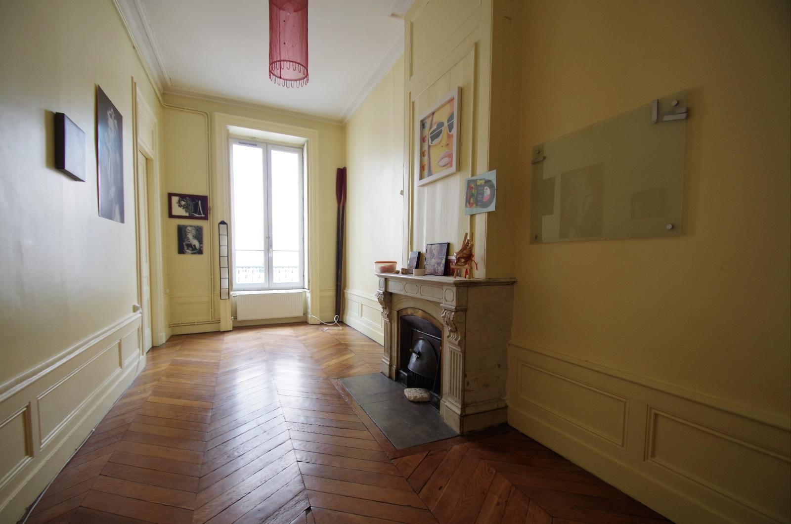 Lyon (69001)T3/T4 de 100 m2 au 2ème étage (ascenseur), traversant Nord/Sud. Parquet chevron, 3 cheminées, belle hauteur sous plafond, cave, grenier, charges faible (84 €/mois).