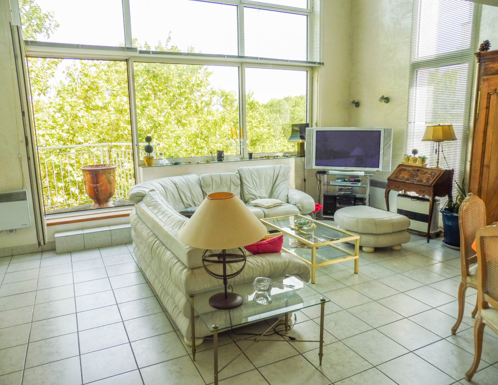 Il se compose d'un vaste sejour avec une grande hauteur sous plafond, une cuisine équipée avec un balcon filant et à l'étage un grand espace mezzanine de plus de 20 m2 avec fenêtre (possibilité 3eme chambre) et 2 grandes chambres dont une avec salle de bain et terrasse, une salle d'eau et un wc séparé.