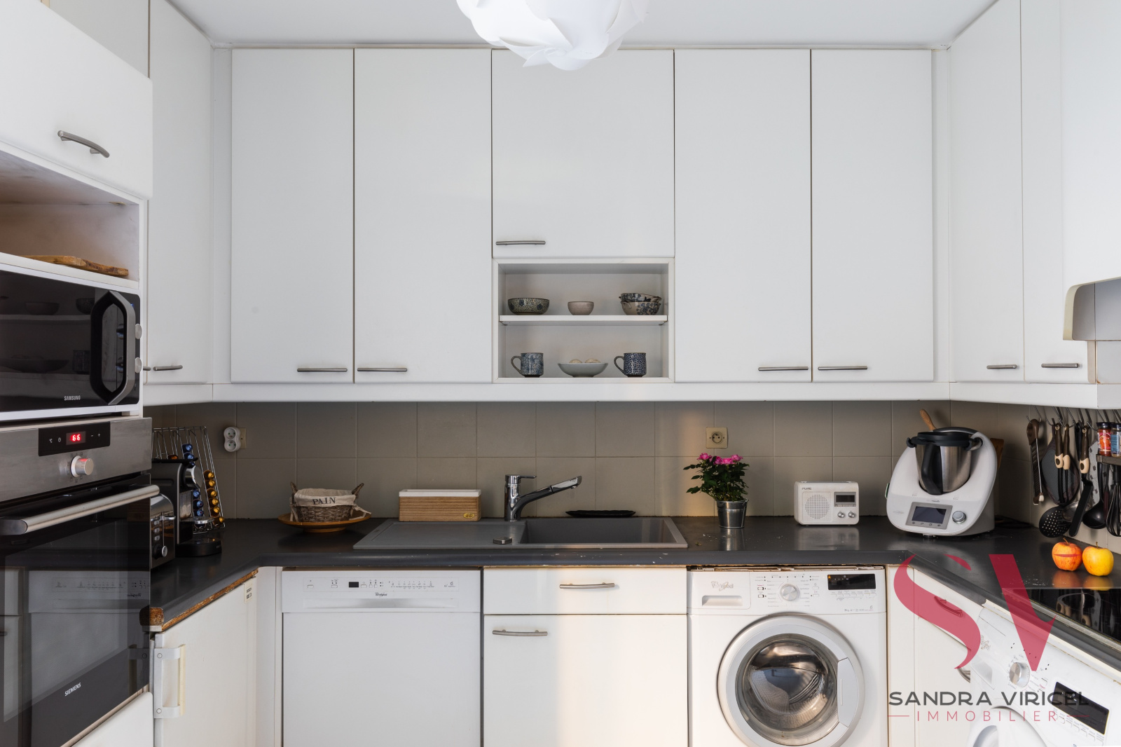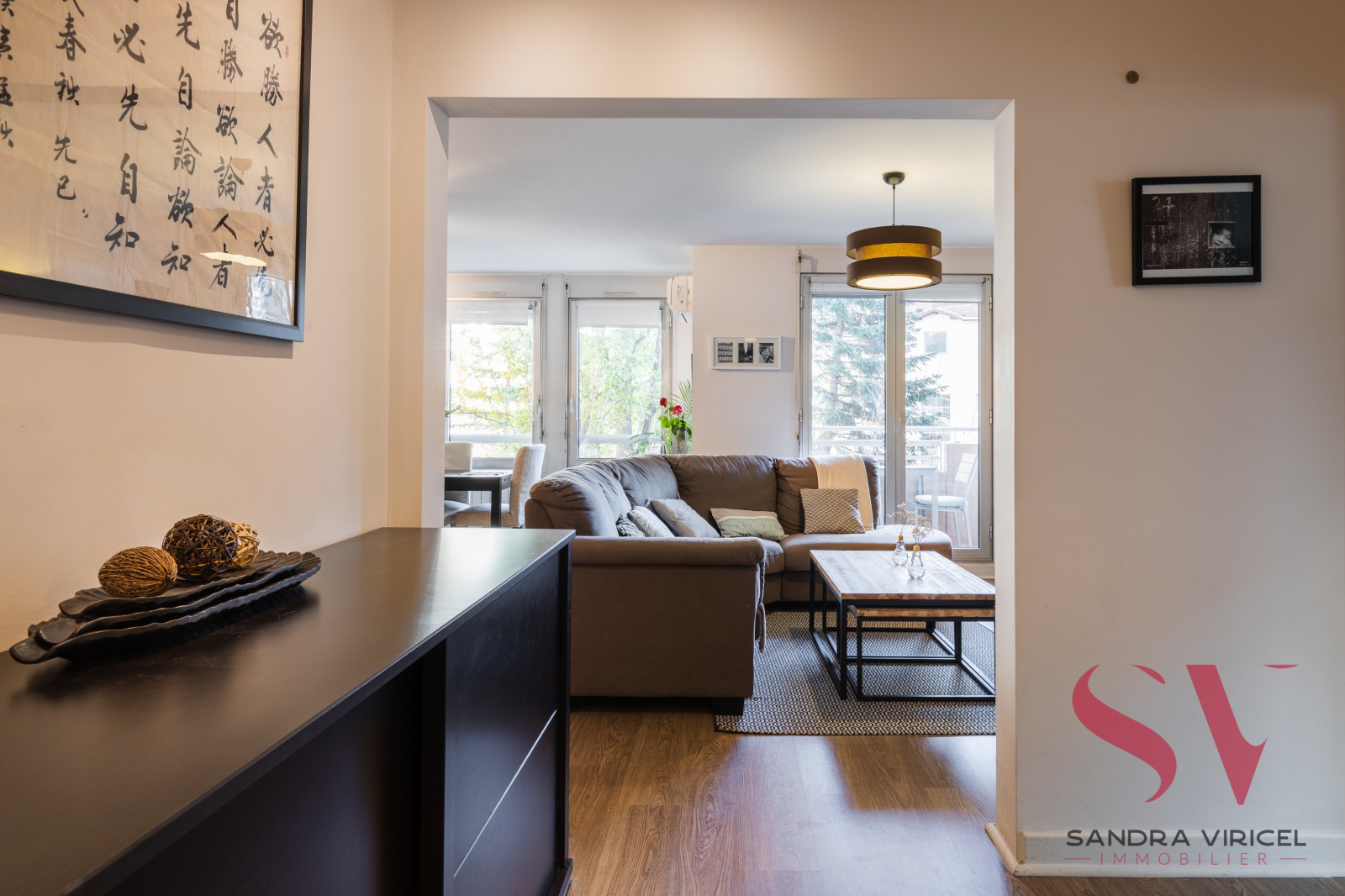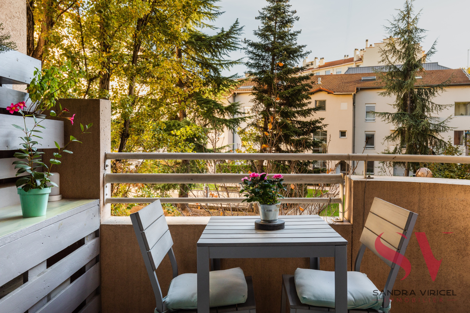 L'appartement est complété par deux balcons, une cave et un garage double.