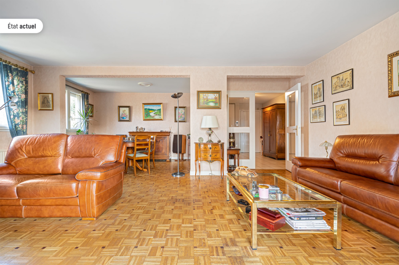 L'appartement bénéficie d'un grand séjour de 37 m2, une cuisine séparée de 12 m2 pouvant s'ouvrir sur le séjour et d'un coin nuit séparé avec 3 chambres, salle de bain et salle d'eau.