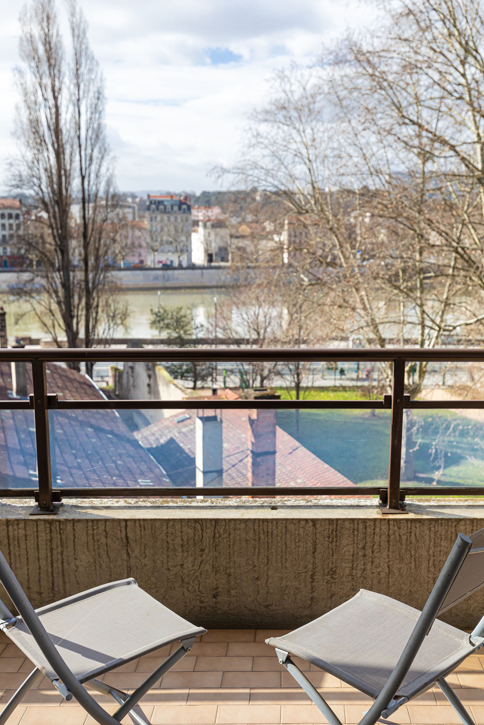 Vous serez immédiatement séduits par la vue dégagée sur la Saône, l'absence de vis-à-vis, la luminosité (séjour orienté Ouest) et l'environnement calme.