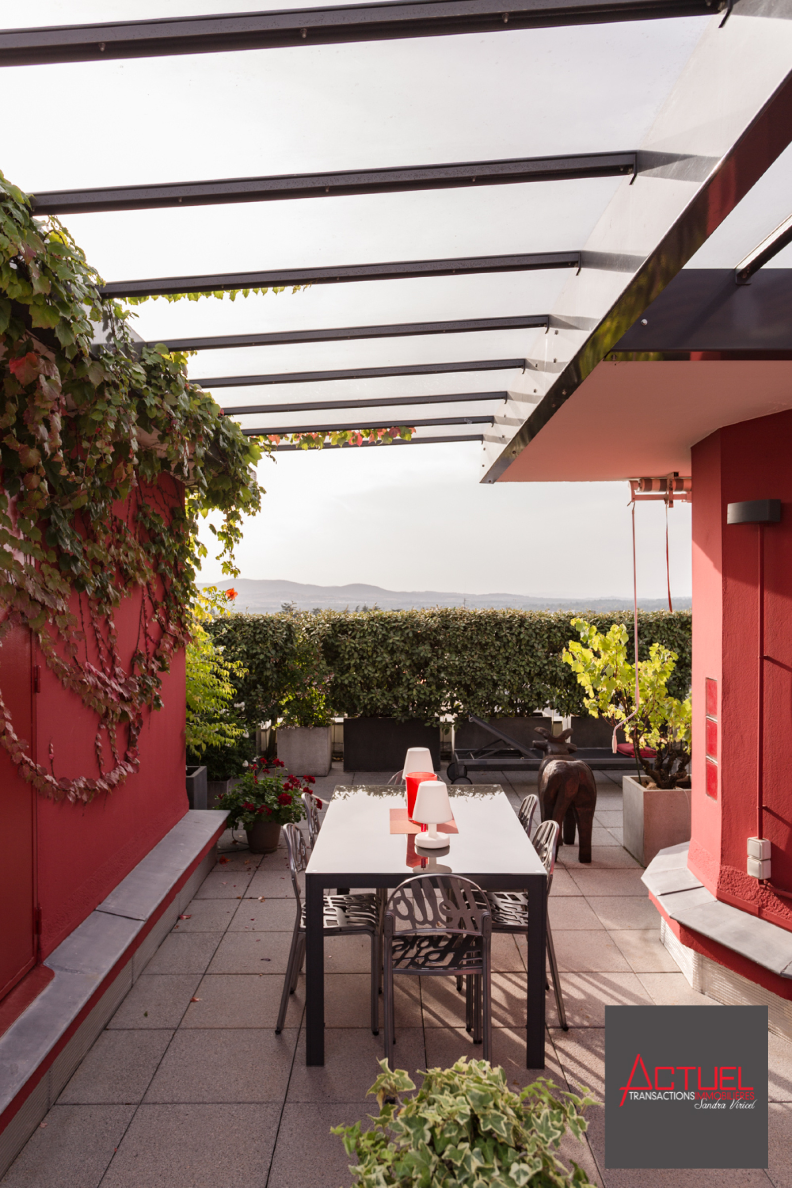 Au dernier étage, lumineux et traversant, vous disposez d'un séjour avec parquet au sol, une cuisine avec cellier et loggia entièrement équipée, deux chambres, un dressing, une salle de bain, et une terrasse sur le toit plein ciel de 107 m2 avec une vue panoramique sur la ville.