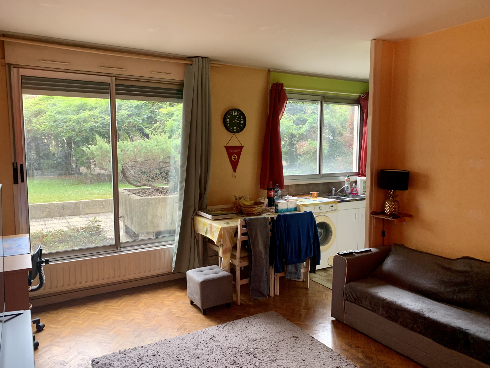 L'appartement est situé au rez-de-chaussée côté jardin avec un séjour, cuisine, salle-de-bains, wc, hall d’entrée et rangements.