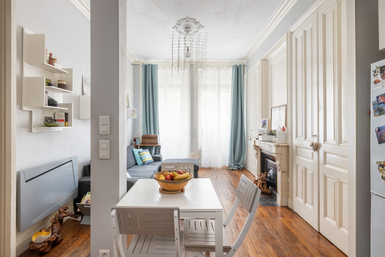 Vous serez immédiatement séduits par le cachet de ce bien (parquet, cheminées, belle hauteur sous plafond), son environnement calme (appartement traversant Ouest sur la rue Duguesclin et Est sur cour intérieure) et son emplacement central à proximité des Halles Paul Bocuse.