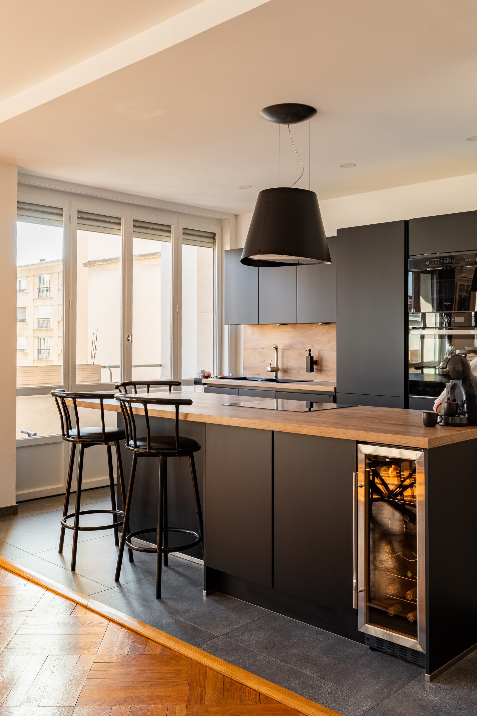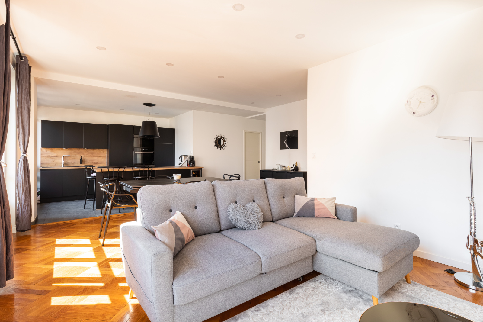 Vous serez immédiatement séduits par sa luminosité (appartement traversant avec séjour orienté Sud), son balcon de 10 m2 avec une vue dégagée, sa grande de pièce de vie avec cuisine ouverte de 43,6 m2, ses 2 chambres au calme sur cour intérieure et sa rénovation très soignée de 2018.