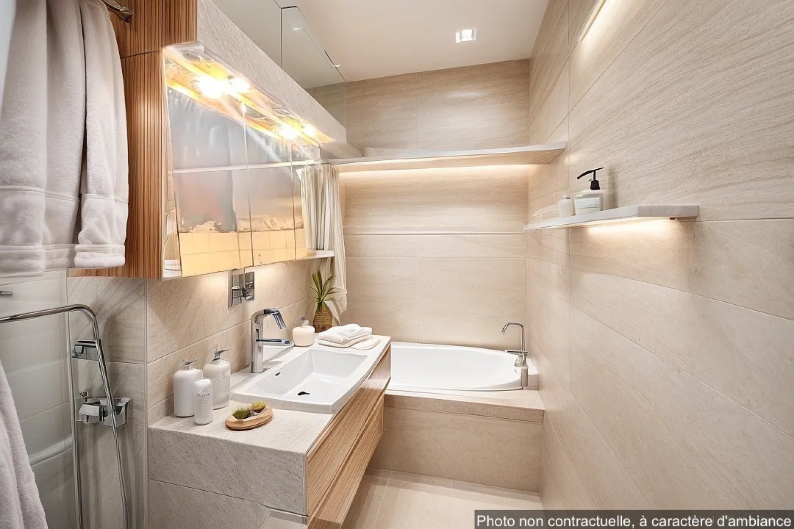Situé au premier étage, il se compose d'un hall d'entrée, un séjour de 21m2 ouvrant sur le balcon de 7,5m2, une cuisine séparée de 7,6 m2, deux chambres, une salle de bain et un WC indépendant.