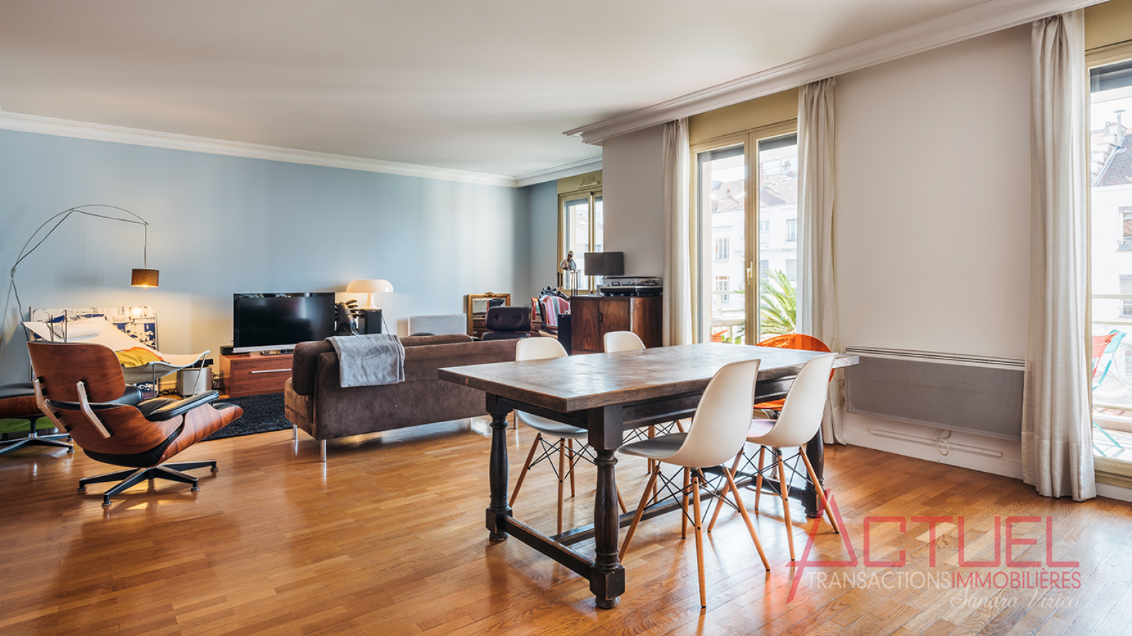 L'appartement dispose d'un grand séjour (44 m²), d'une cuisine séparée (possibilité de l'ouvrir sur le séjour), de 3 chambres (possibilité 4), d'une salle de bain, d'une salle d'eau et d'un dressing. Une cave et un garage (30 000 € en sus) complètent ce bien. Produit rare, à visiter rapidement.
