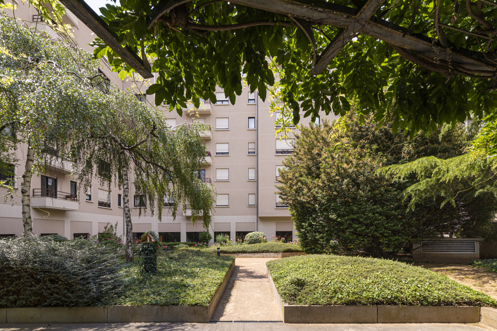 L'immeuble, situé au coeur du triangle d'Or, bénéficie des services d'une gardienne et d'un jardin paysager.