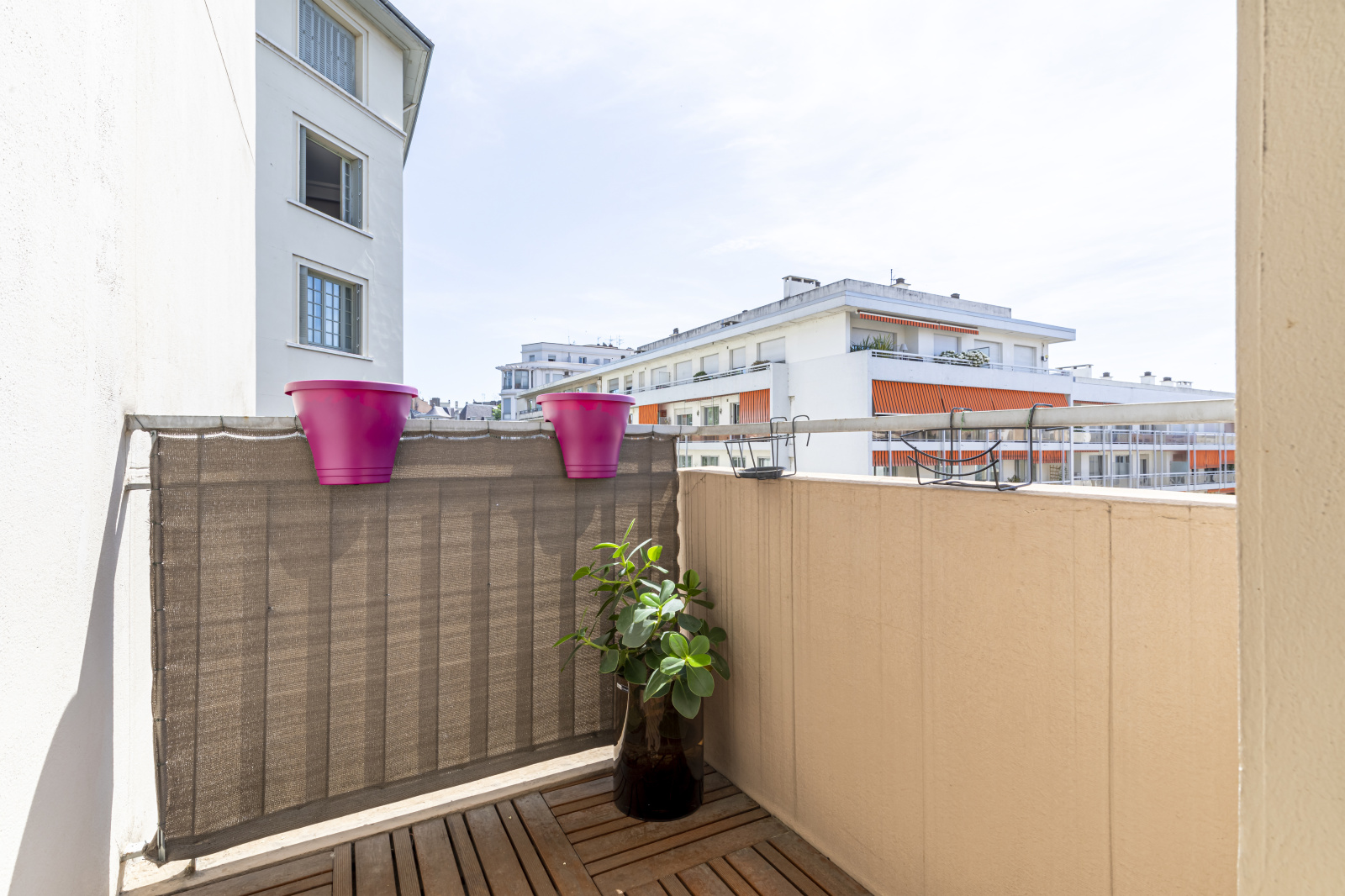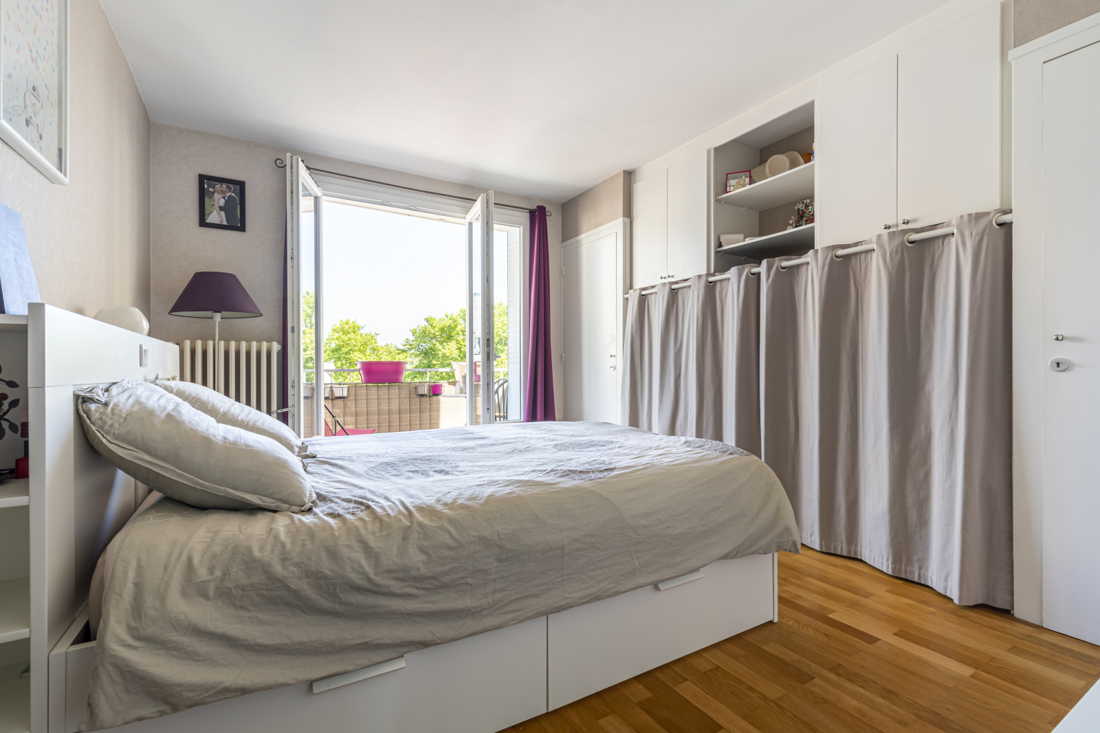 Situé au 5ème étage, l'appartement bénéficie d'un grand séjour de 33,4 m² avec accès balcon, d'une cuisine séparée équipée, de 2 grandes chambres (11 et 16 m²) dont une chambre parentale avec dressing et balcon, d'une salle de bains, et d'un WC séparé.