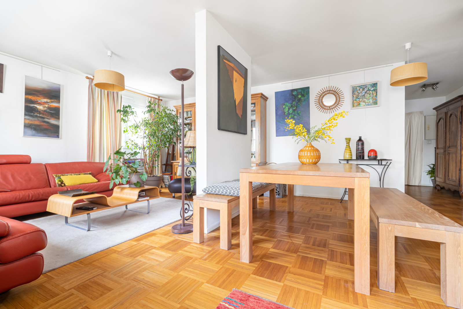 L'appartement bénéficie d'un séjour de 34 m2, une cuisine fermée pouvant être ouverte sur le séjour, de 3 chambres, salle de bains, salle d'eau, 2 WC. Existence de 2 portes palières permettant une modularité de l'appartement en fonction de vos besoins.
