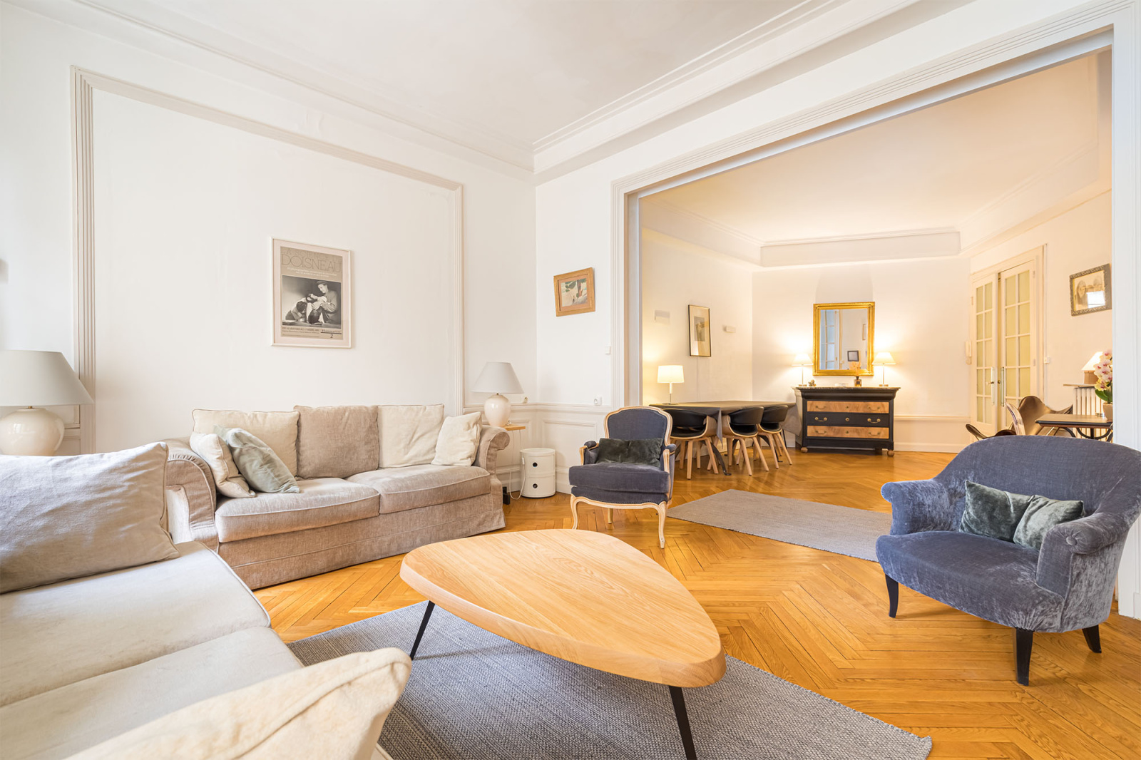 Situé au 1er étage, l'appartement bénéficie d'un vaste séjour, d'une cuisine séparée, de 4 grandes chambres (modularité des espaces), d'une salle d'eau, d'un dressing et de 2 WC.