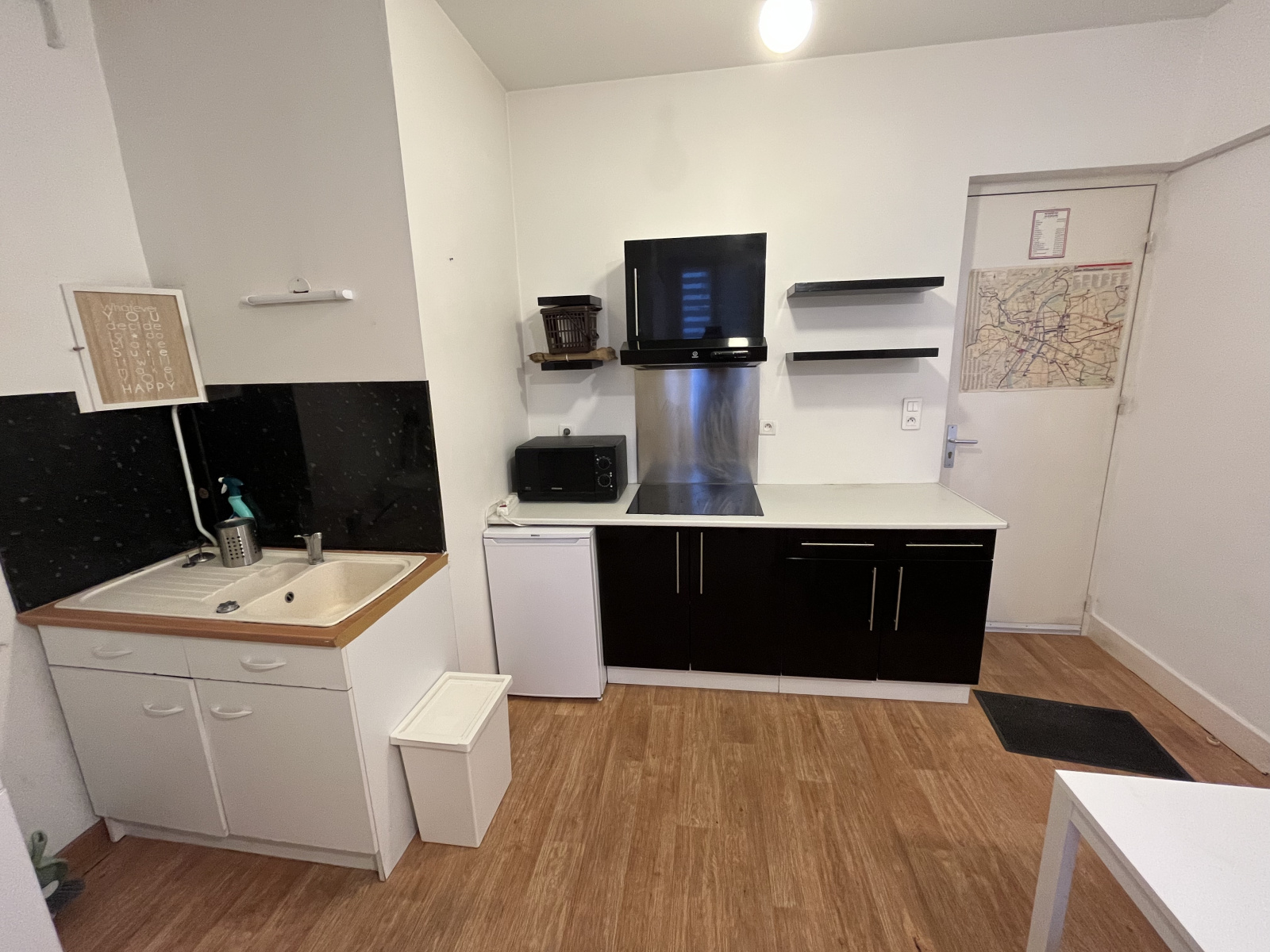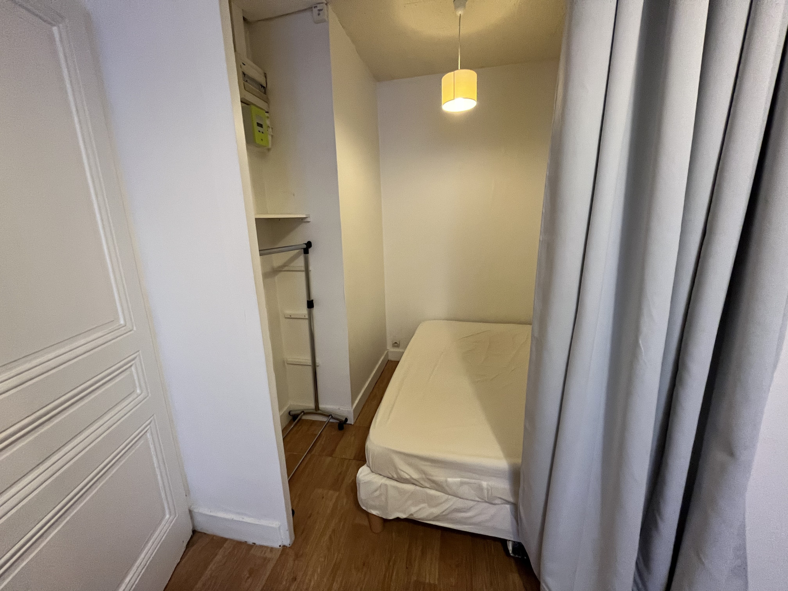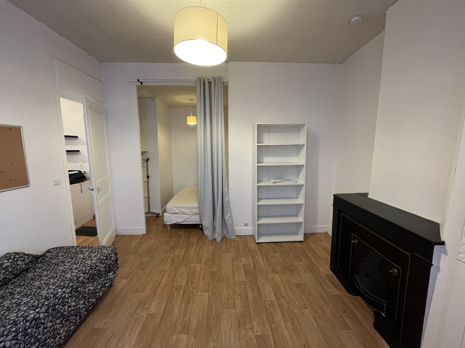 Situé au 1er étage sur cour intérieure, l'appartement bénéficie de 2 pièces : un séjour avec alcôve et une grande cuisine. Salle d'eau avec WC sanibroyeur.