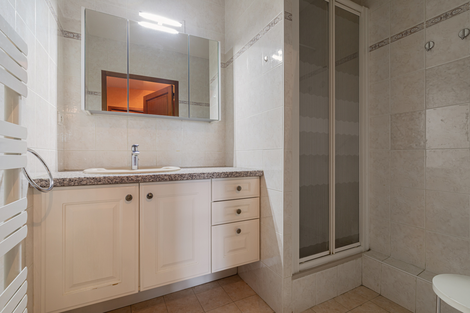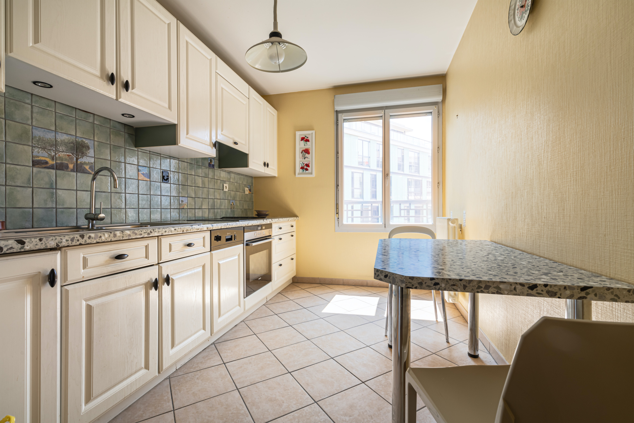 Situé au 4ème étage, l'appartement bénéficie actuellement d'une cuisine séparée de 10 m², d'un grand séjour de 26 m² donnant sur un balcon, de 2 chambres (10,4 et 11,1 m²), salle d'eau et WC. La cuisine peut s'ouvrir sur le séjour et ainsi créer une pièce de vie de près de 40 m².