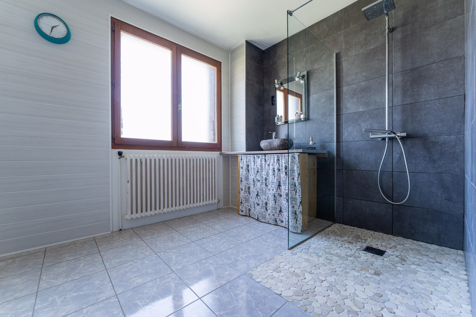Au sous-sol, deux garages, une cave et une chaufferie (possibilité de créér de nouveaux espaces habitables).