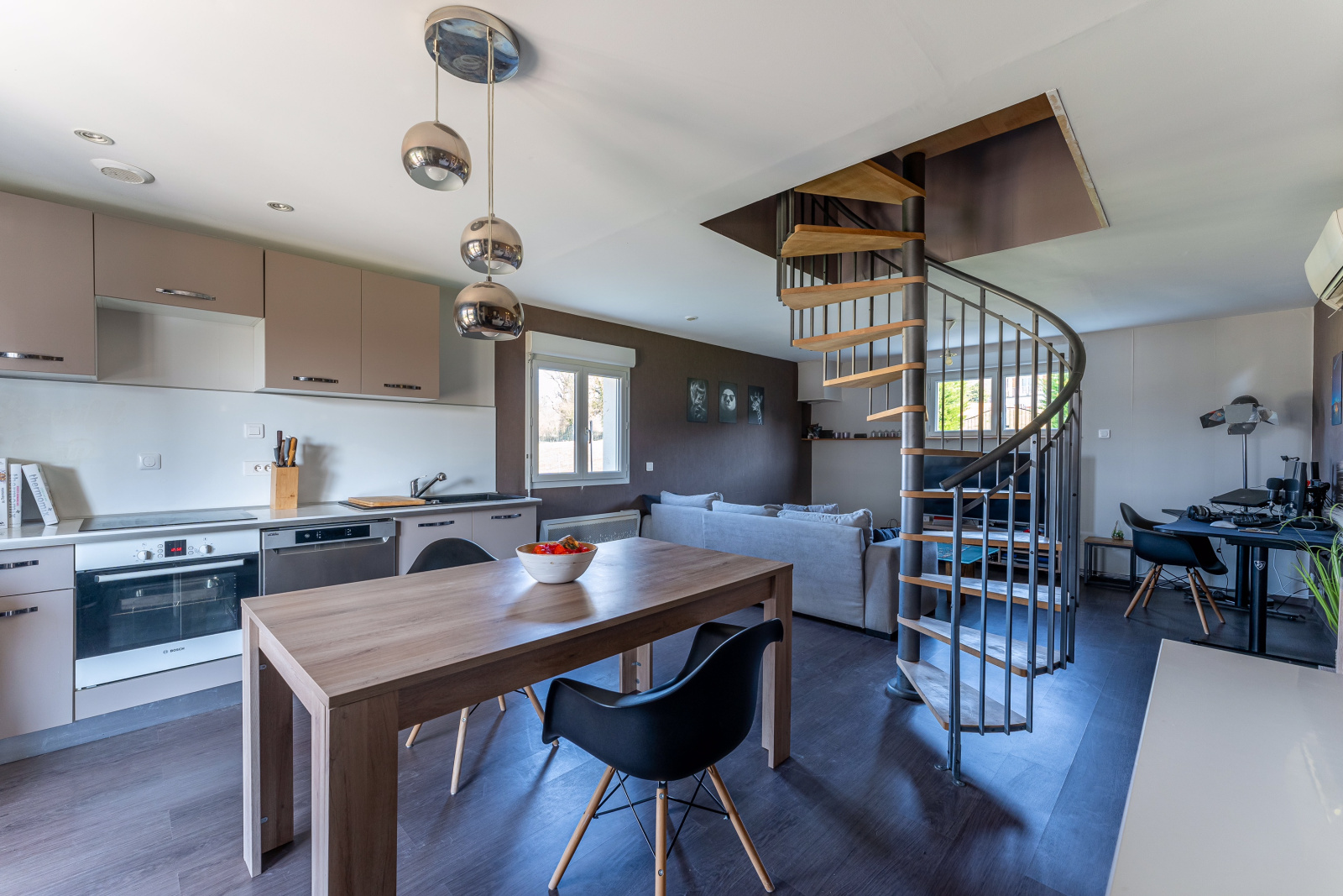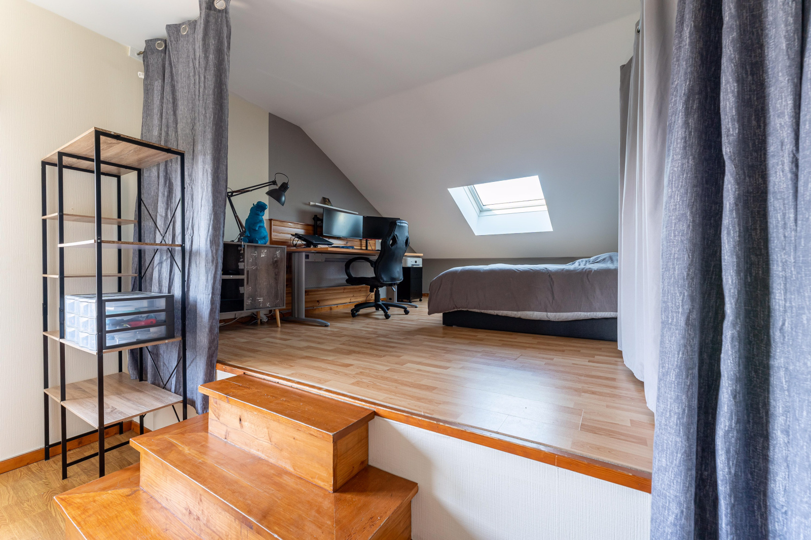 Au deuxième niveau, trois chambres (2 ch + 1 bureau) et un espace aménageable( ex salle d'eau, dressing...).