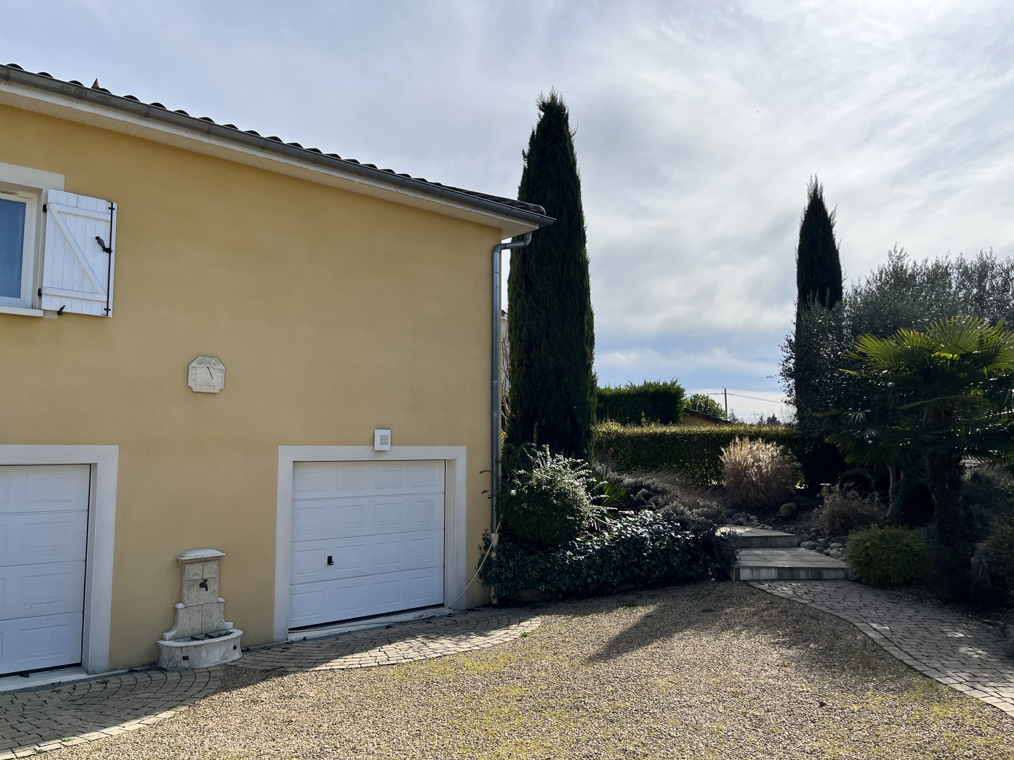 Construite en 2005, elle offre 138m2 habitable plus une grande buanderie, un double garage le tout sur une parcelle arborée et clos de mur de 1005m2.