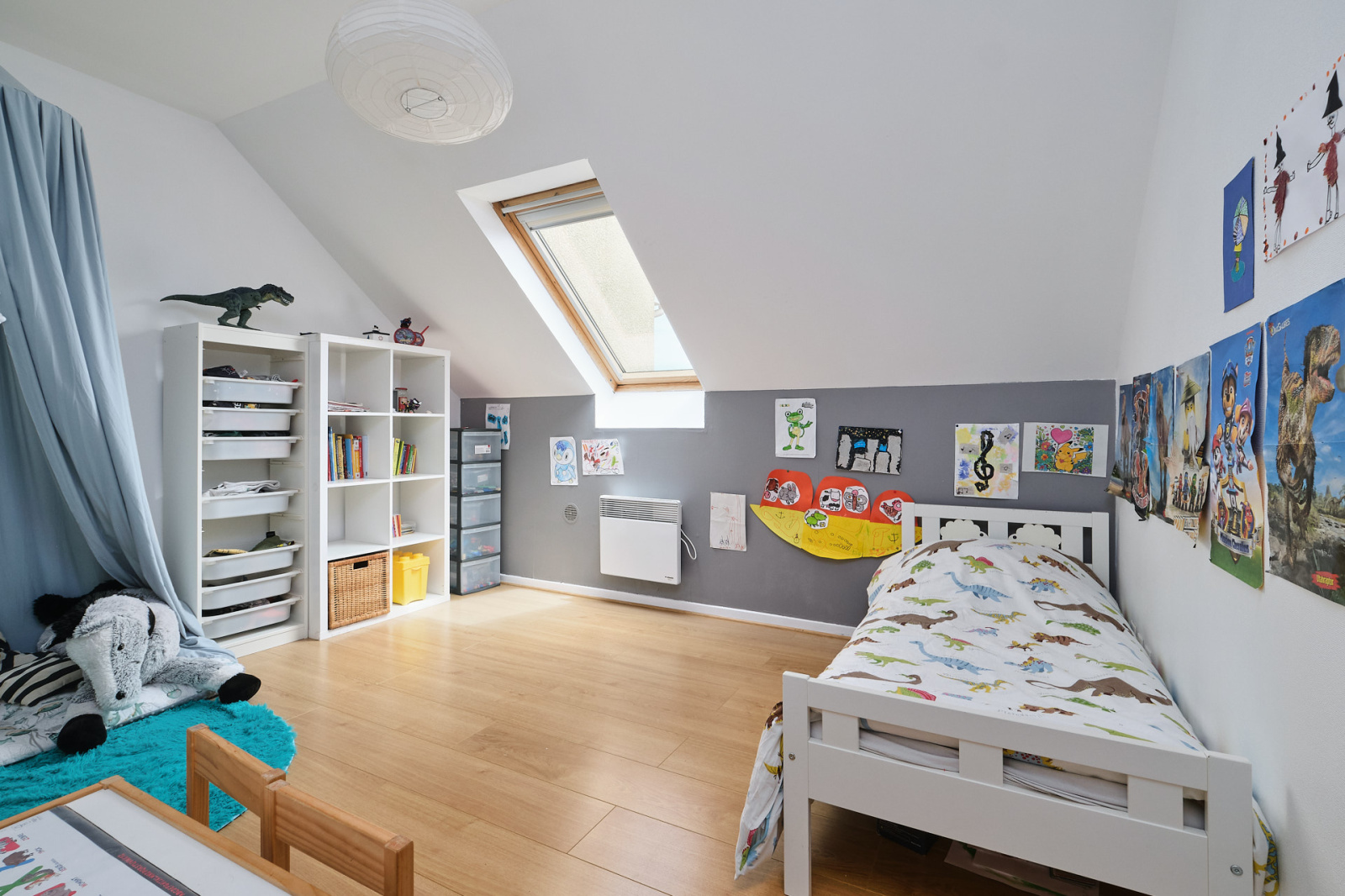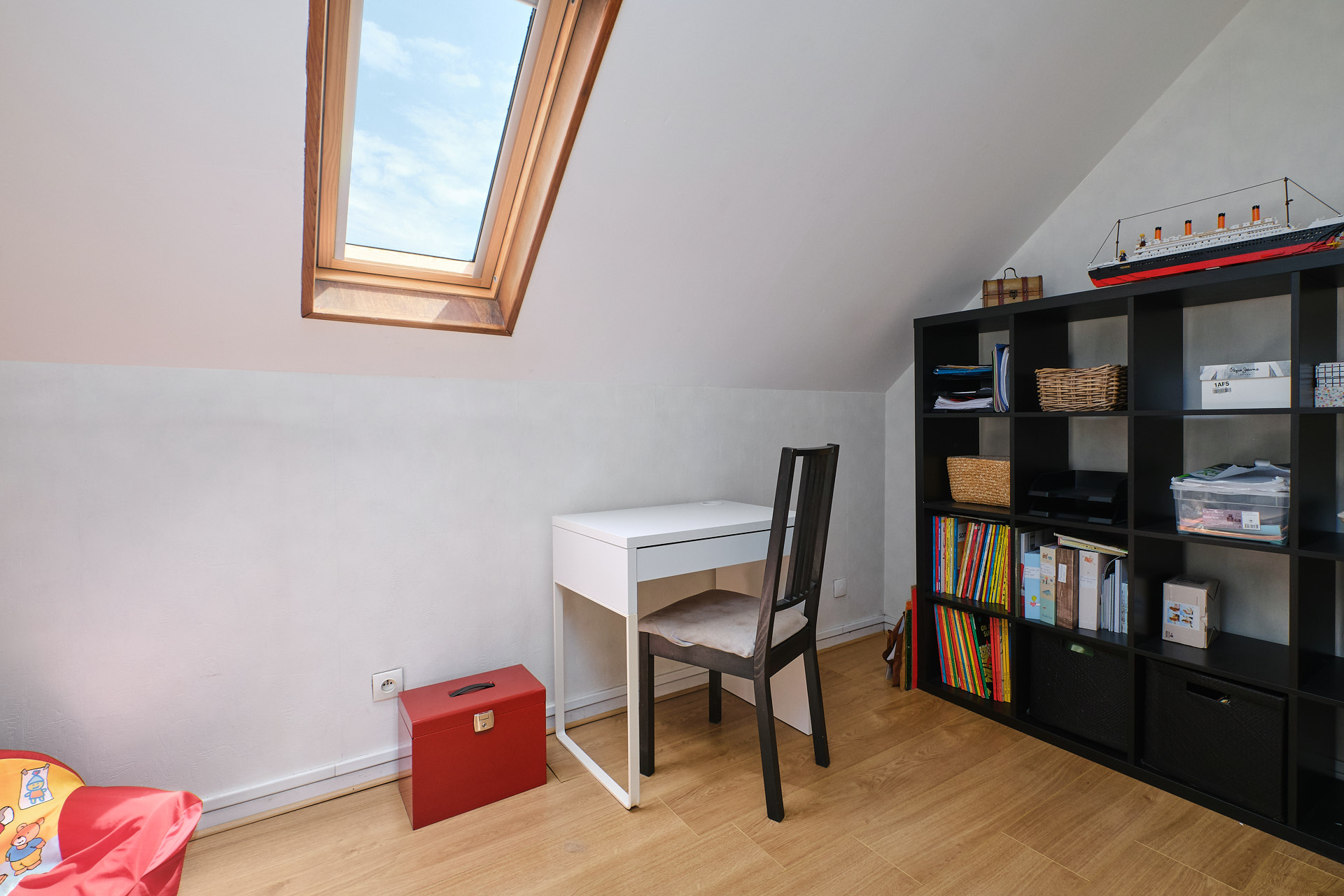 A l’étage, vous découvrirez 3 chambres dont une sous pente (avec velux), un bureau sous pente ainsi qu’une salle d’eau avec douche et WC.