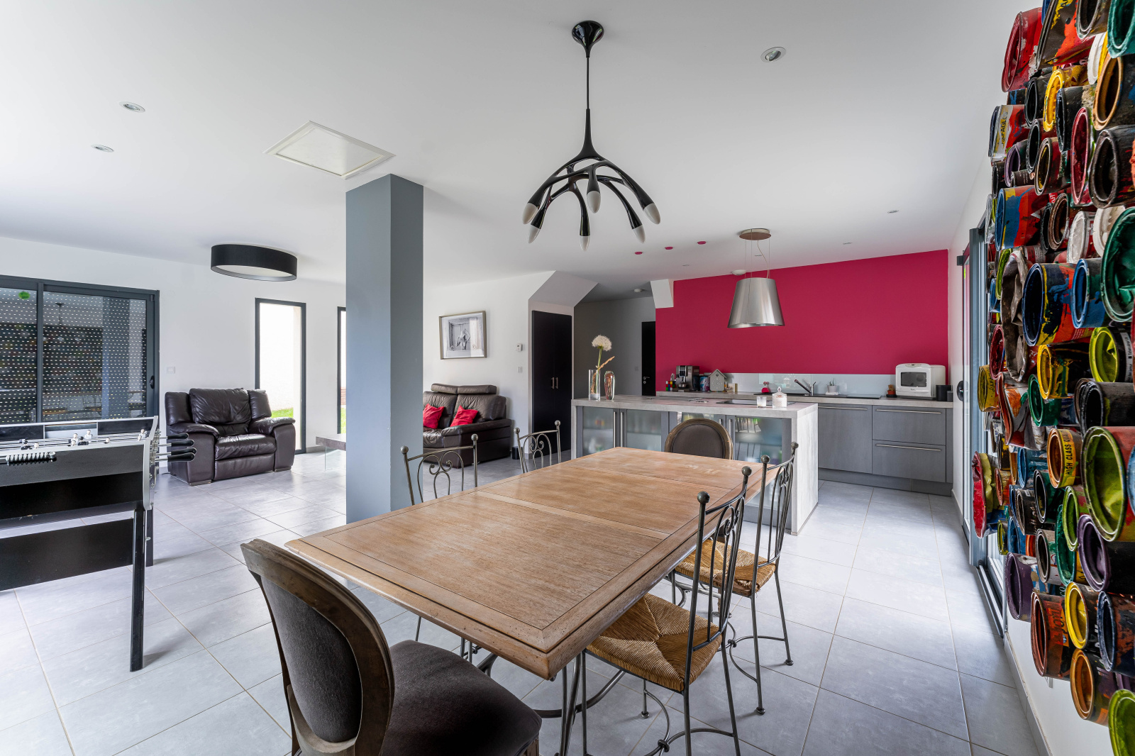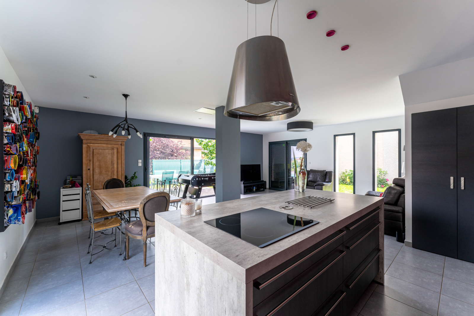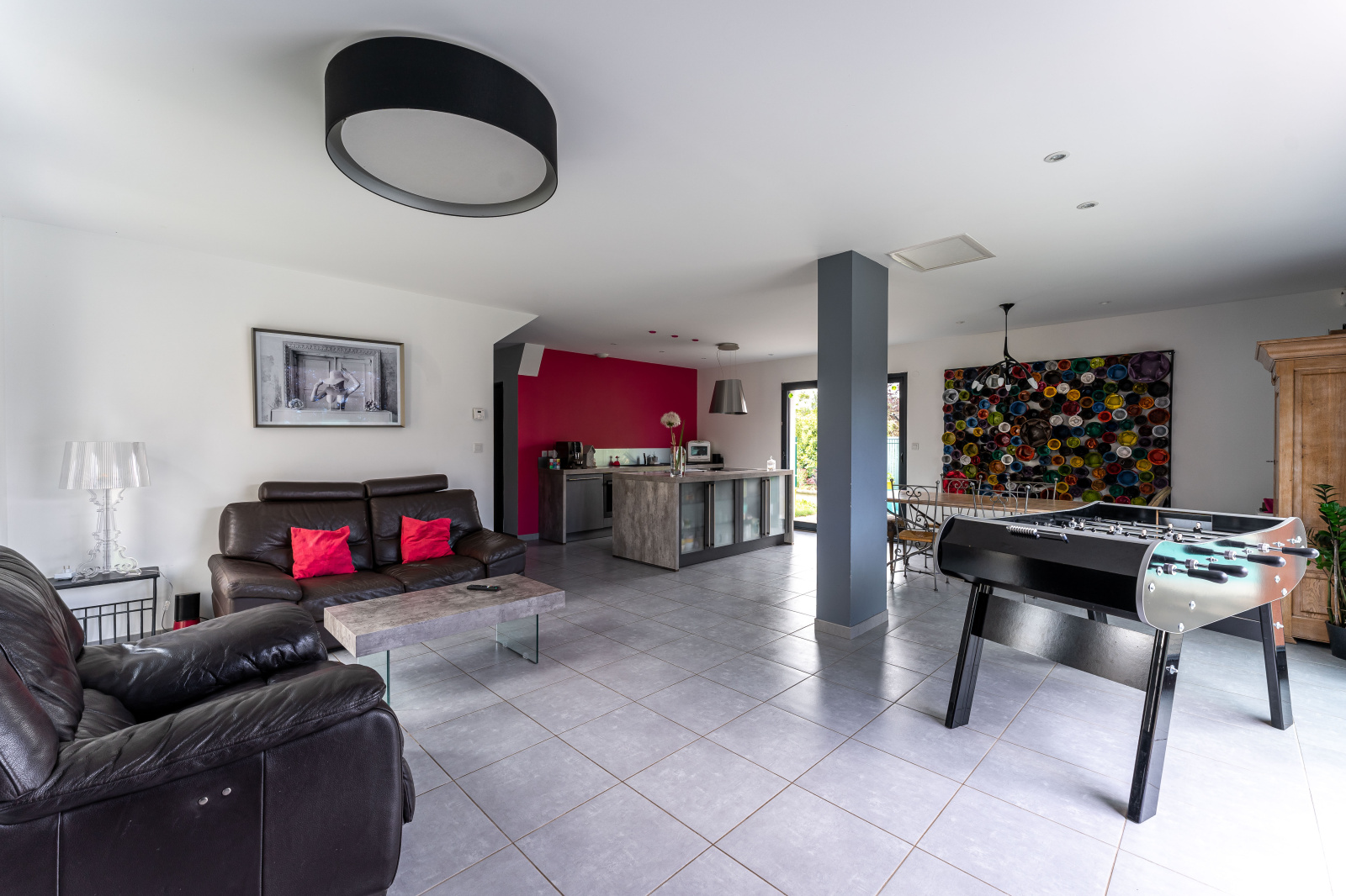 Le rez-de-chaussée dispose également d'un bureau, un cellier avec coin buanderie, un WC et un garage de 34 m2.