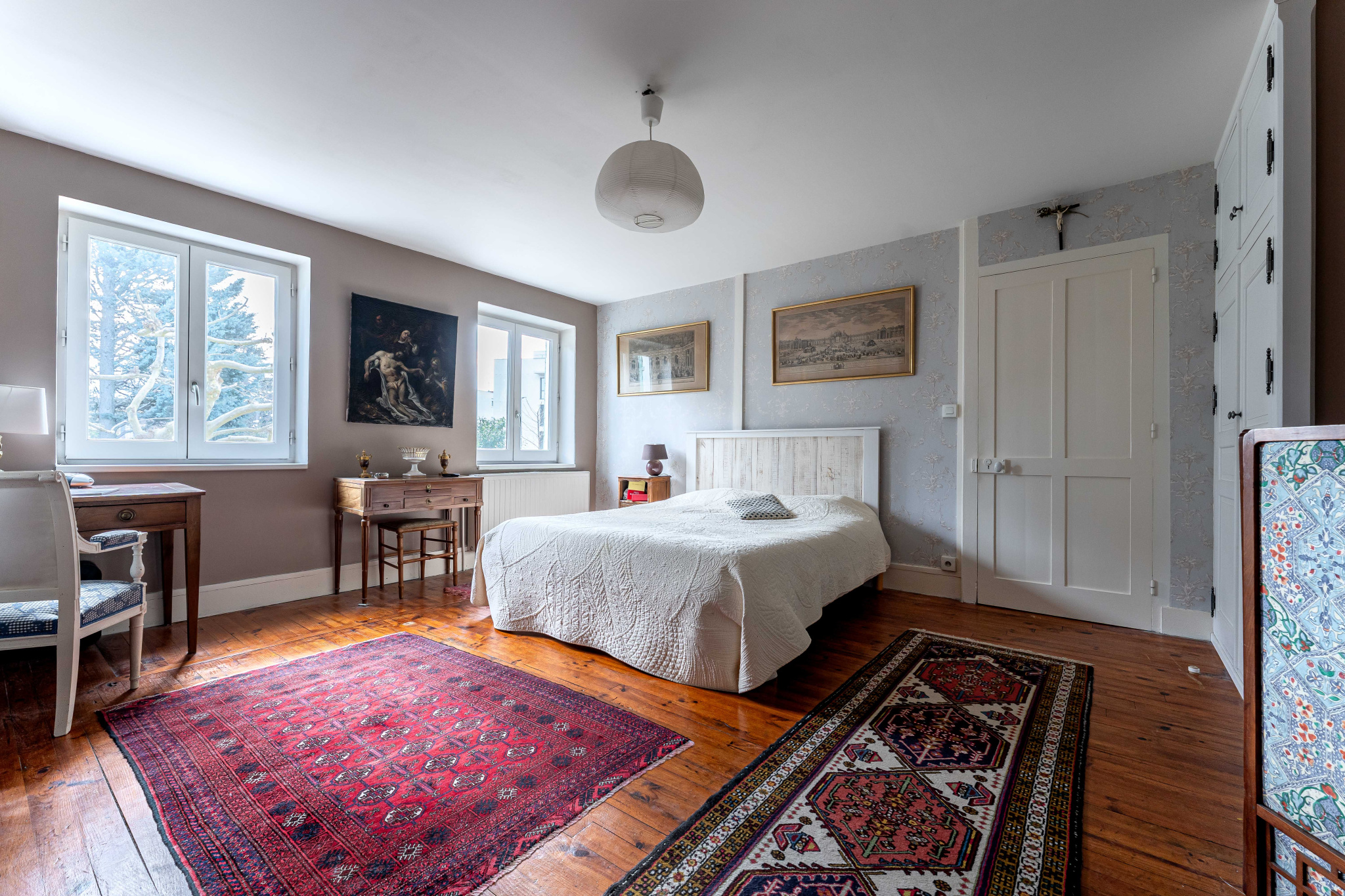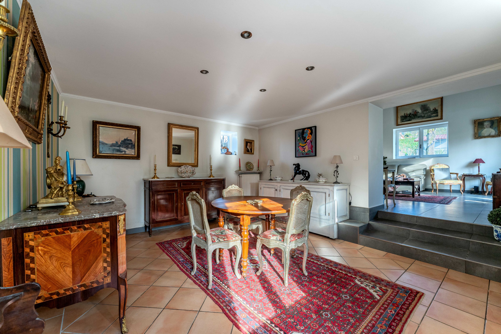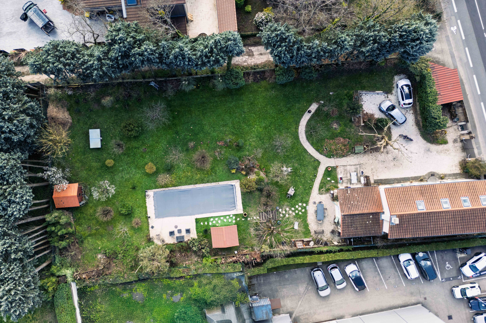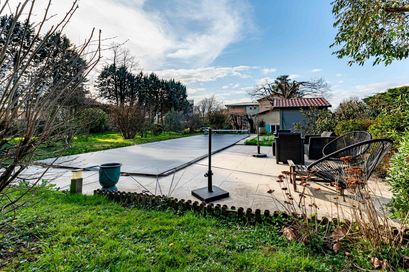Côté extérieur, le terrain entièrement clos s’ouvre sur un beau parc arboré composé de diverses essences, offrant un cadre naturel et apaisant. Plusieurs espaces sont aménagés pour la détente et les moments de convivialité. La piscine chauffée au sel et une belle terrasse agrémentent le jardin. Un vaste espace de stationnement, un puits, trois abris complètent l’ensemble.