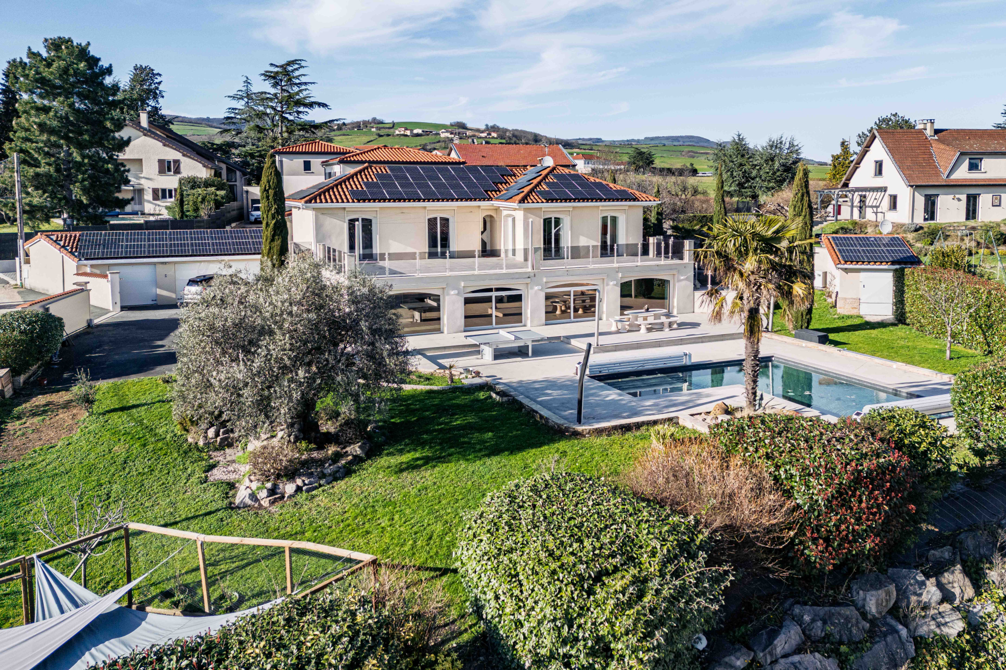 Des panneaux photovoltaiques assurent quasiment l'autoconsommation de cette grande maison.