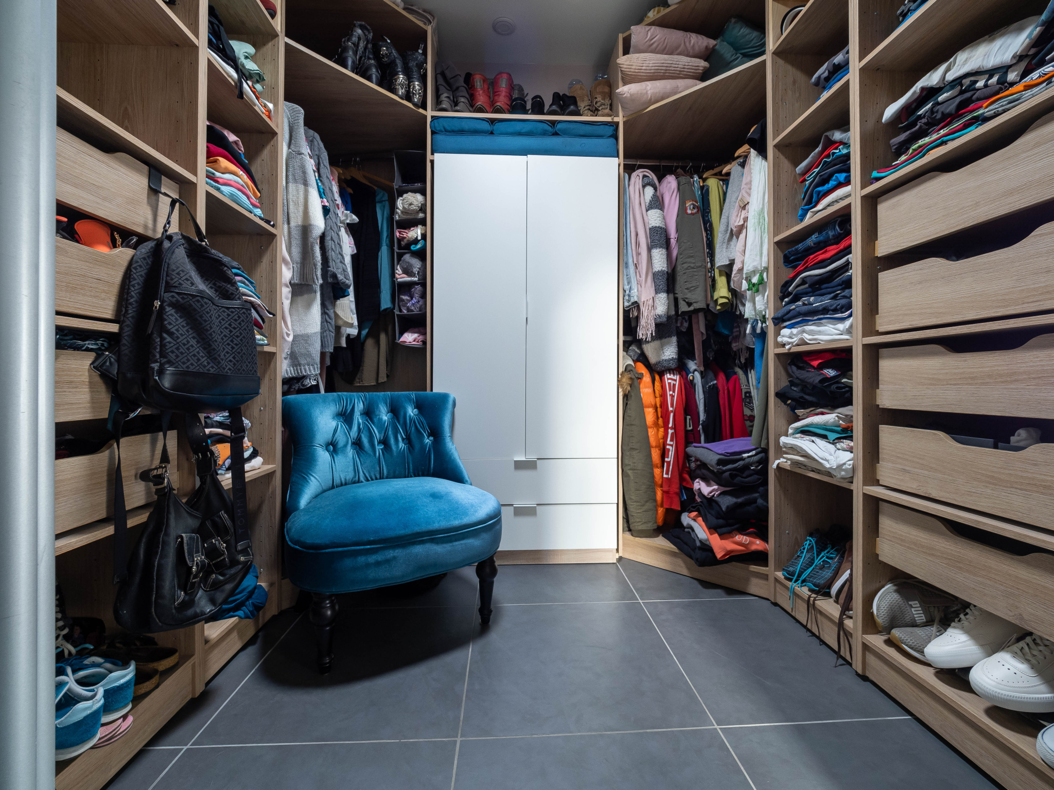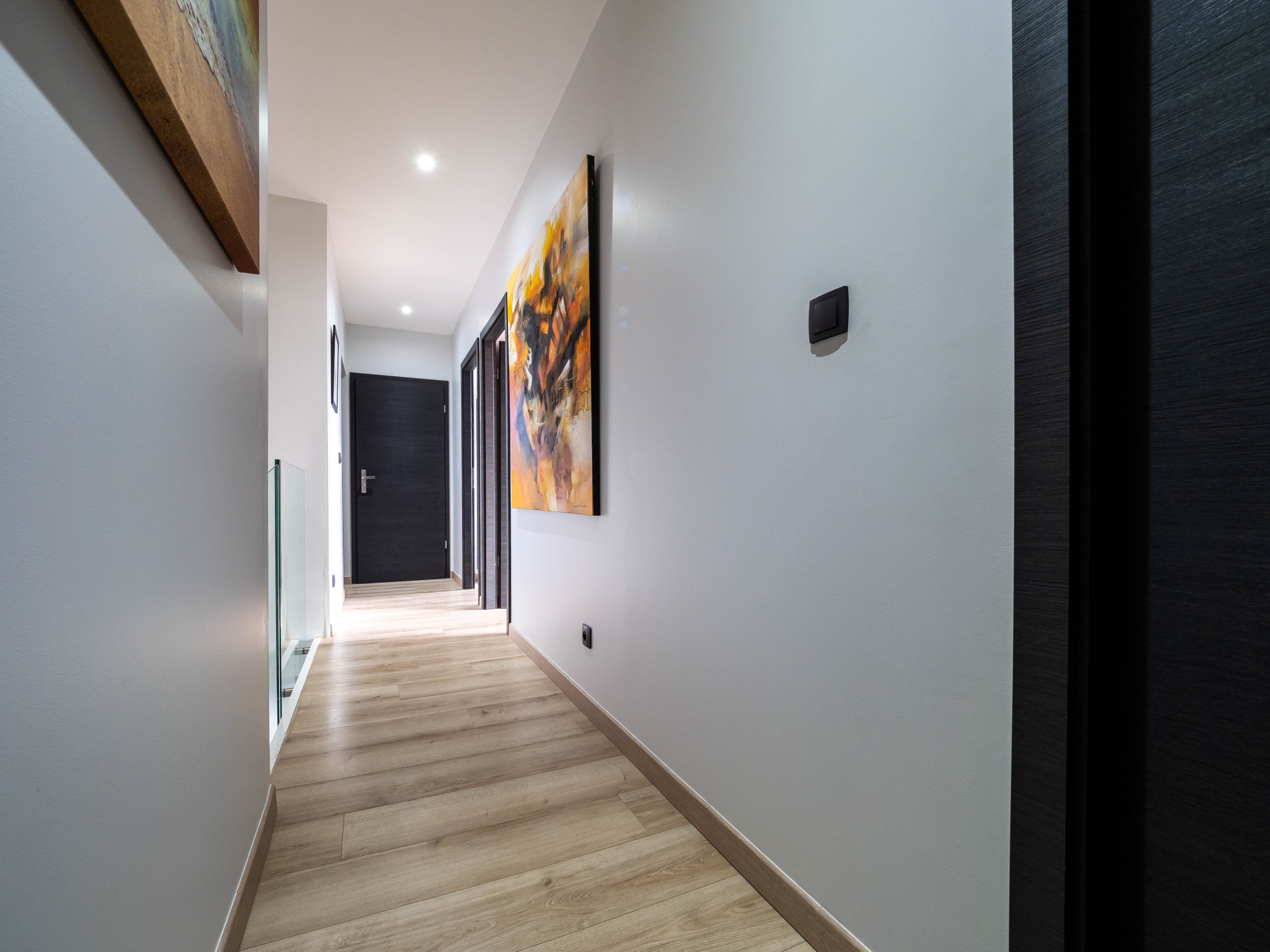 Elle se compose d'une grande pièce de vie, avec cuisine ouverte et équipée, de 5 chambres, 1 dressing, deux salles de bain (baignoire et douche), 3 WC, une buanderie/cellier, et une salle de sport.