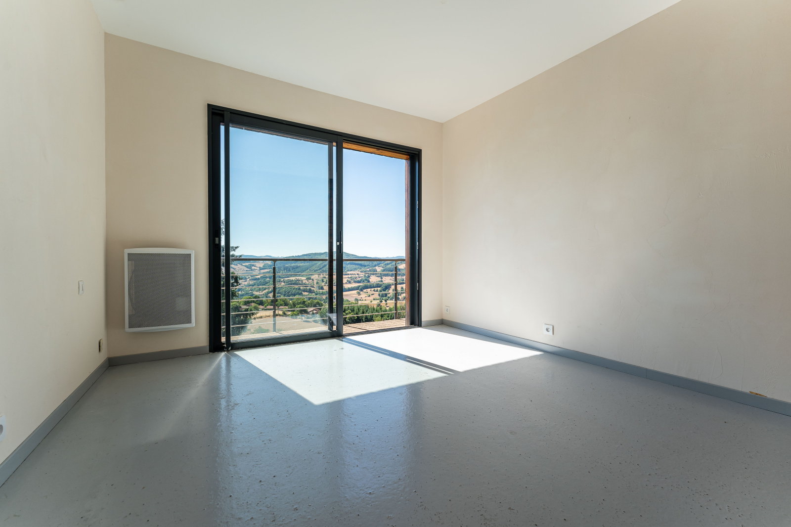 Un escalier vous emmène ensuite dans un grand salon séjour cuisine baigné de lumière donnant sur une terrasse avec une vue magnifique sur la campagne. Vous retrouvez également sur ce niveau, une chambre parentale avec son dressing avec accès à la terrasse, une deuxième chambre avec son entrée indépendante, une salle d'eau et un wc. Possibilité de créer un chambre supplémentaire.