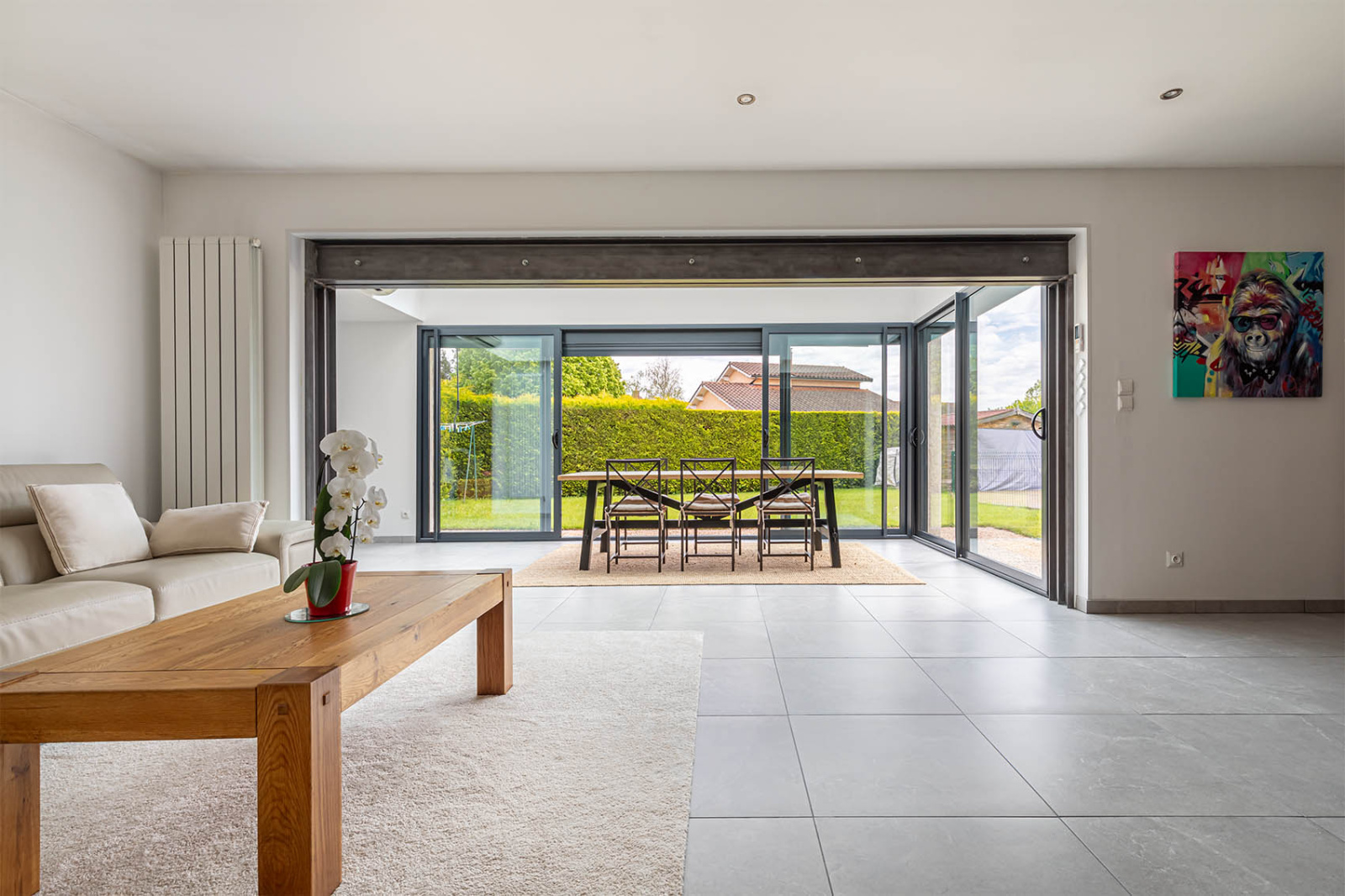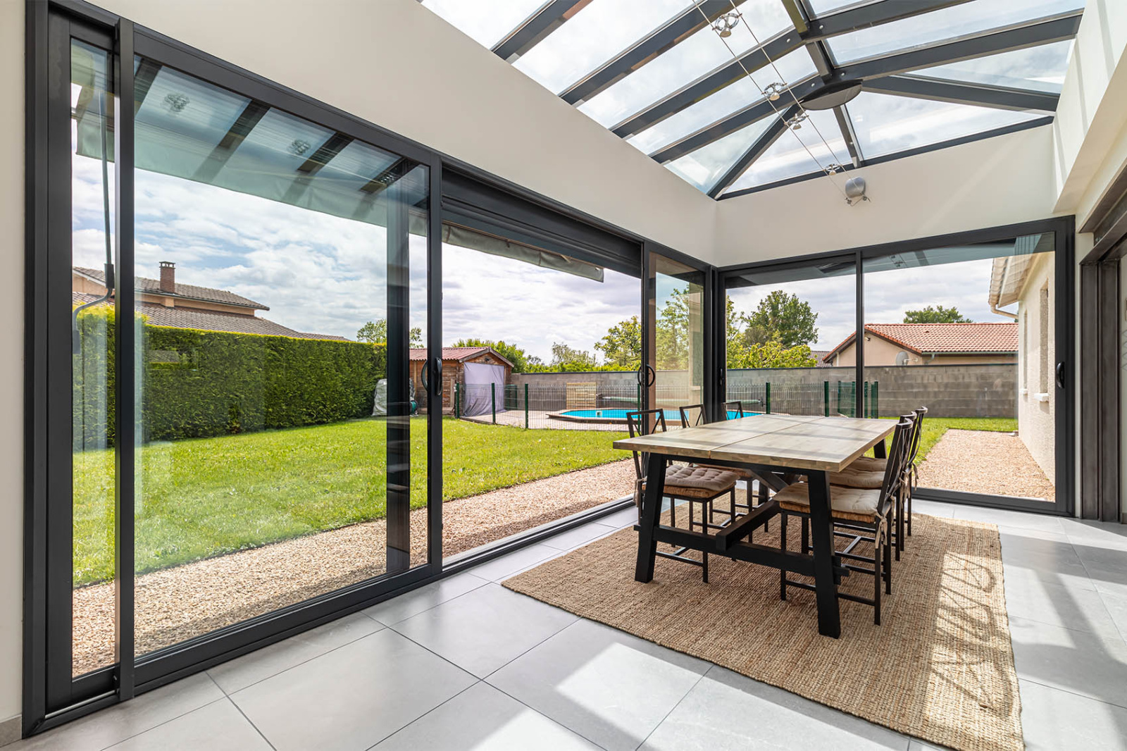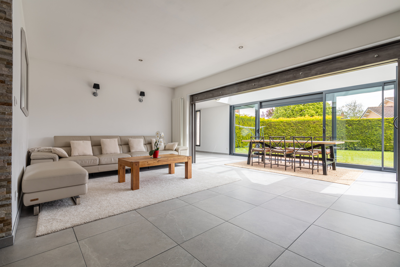 Dès l'entrée vous serez séduit par le volume, la lumière et la qualité des réalisaitons. La cuisine, spacieuse et entièrement équipée, le salon, la salle à manger, le tout donnant sur le jardin, la terrasse abritée et la piscine. Tout est réuni pour accueillir une famille, vos amis.