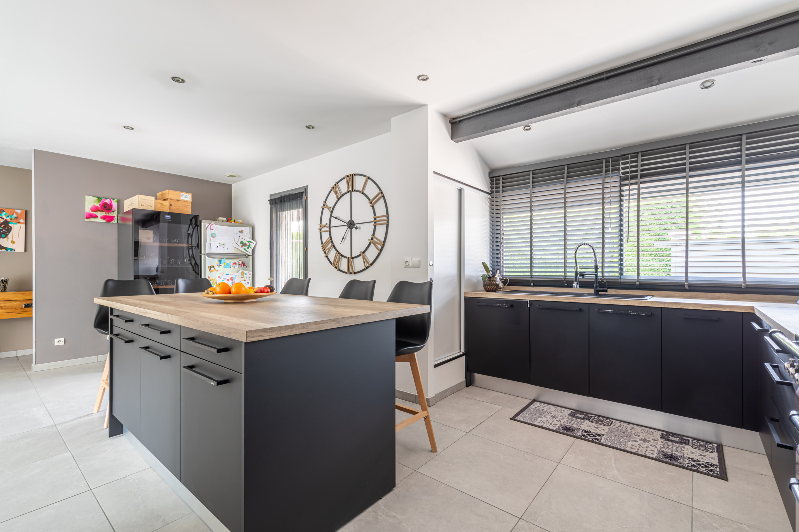 Un grand garage avec porte motorisée complète le bien.