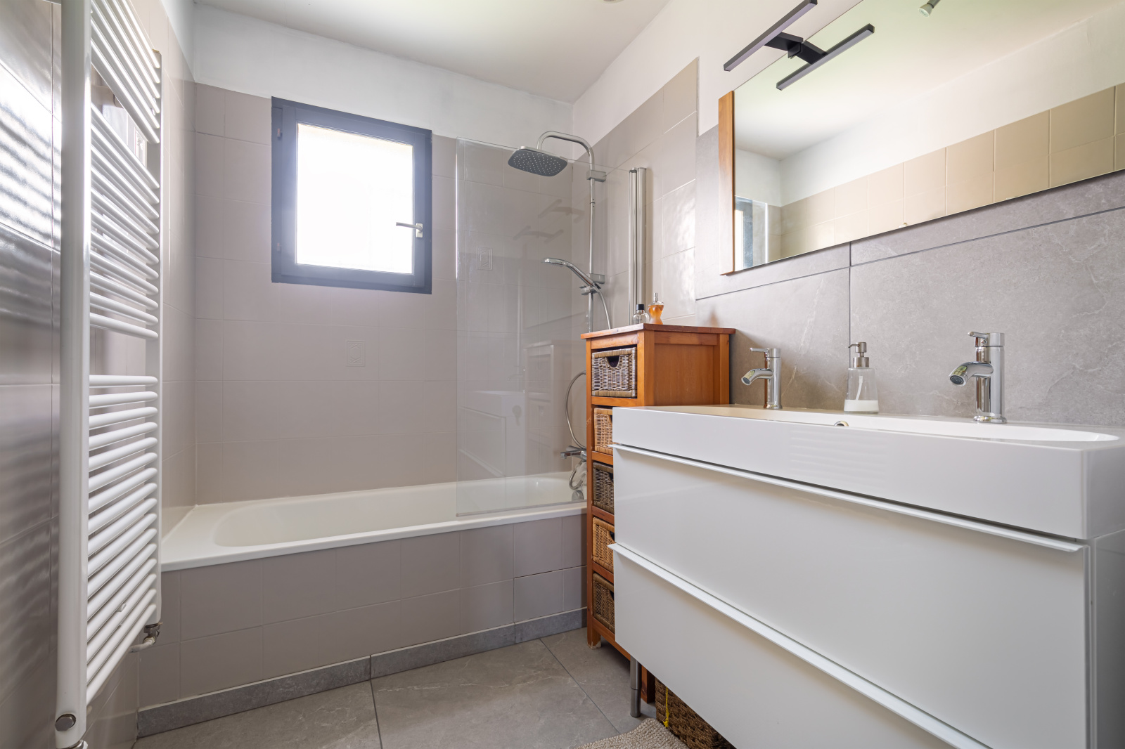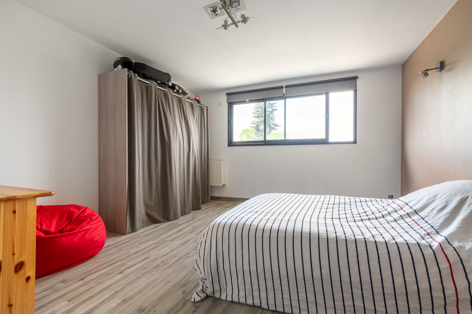 Deux chambres, dont une de 23m2 avce son dressing, une grande salle de bain, un wc et une buanderie complètent le rez de chaussée.