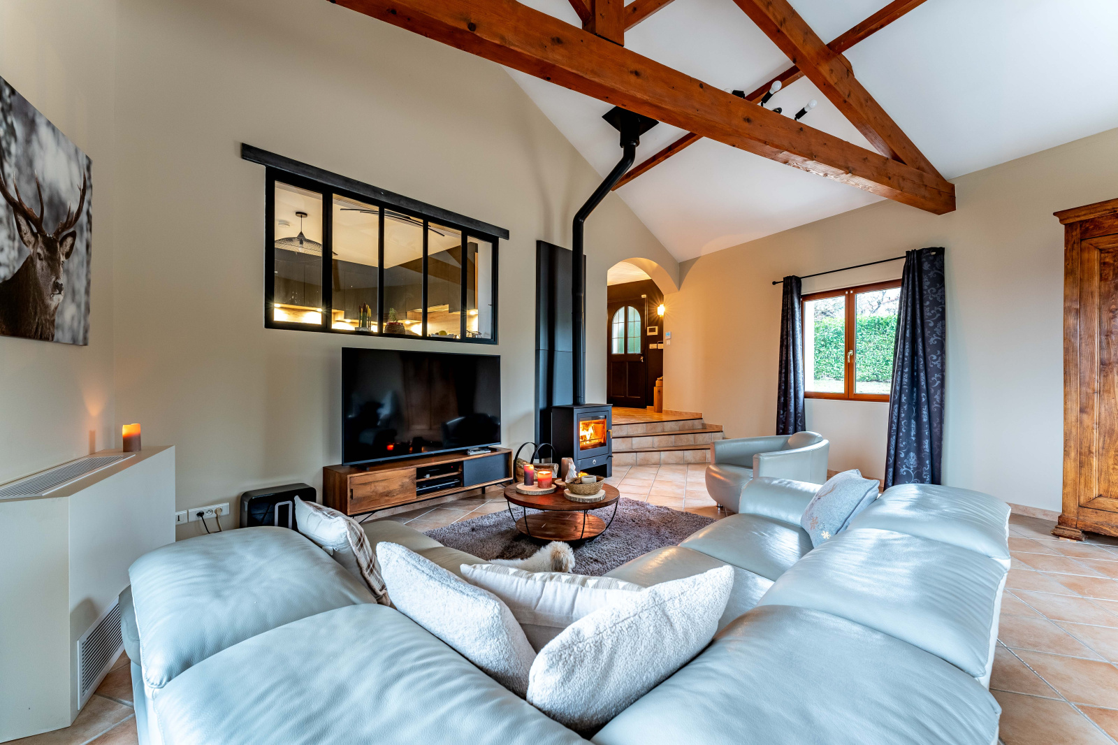 Enfin pour votre confort la maison est chauffée avec une climatisation réversible et un poêle à bois.