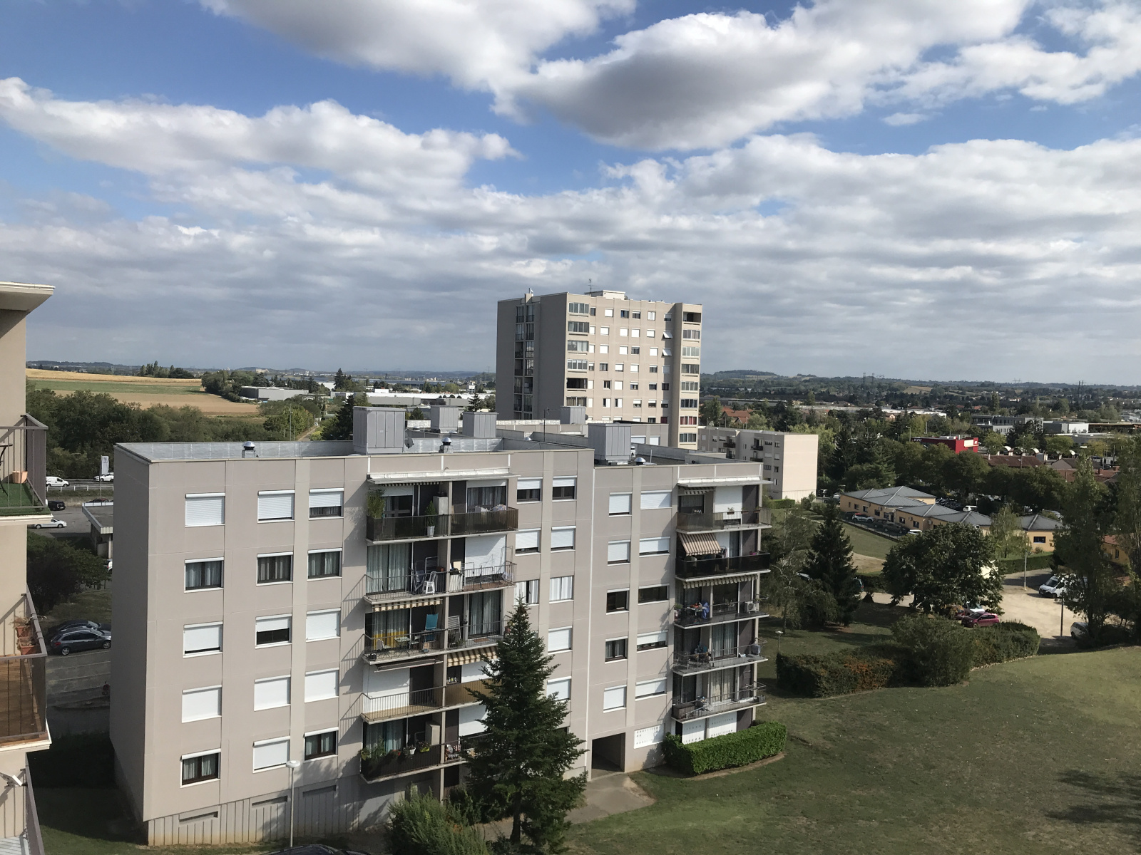 Saint-Priest (69800)T3 de 65m2 situé au cinquième et dernier étage avec vue dégagée et sans vis-à-vis, orienté plein sud, très lumineux avec une terrasse-balcon de 8m2.