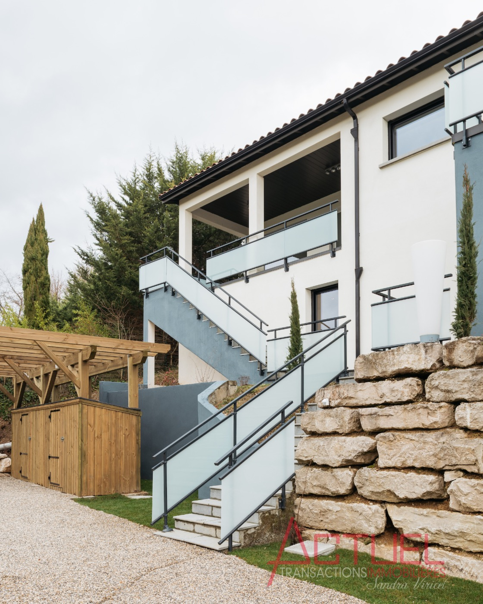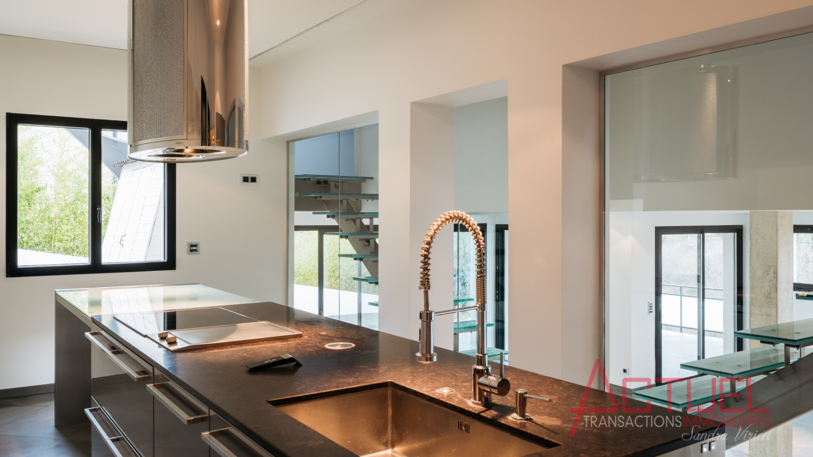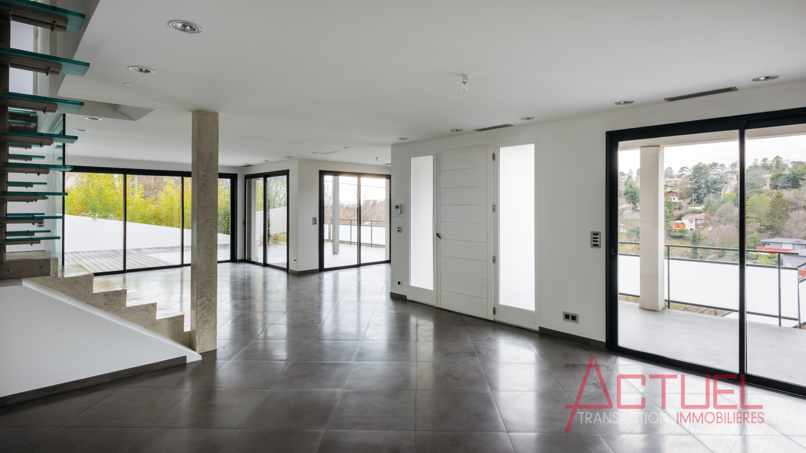 Saint-Cyr-au-Mont-d'Or (69450)Spectaculaire maison contemporaine de 235 m2 avec 700 m2 de terrain. Bien orientée, au calme avec une très belle vue dégagée. Grande pièce de vie ouvrant sur une grande terrasse et un espace piscine.