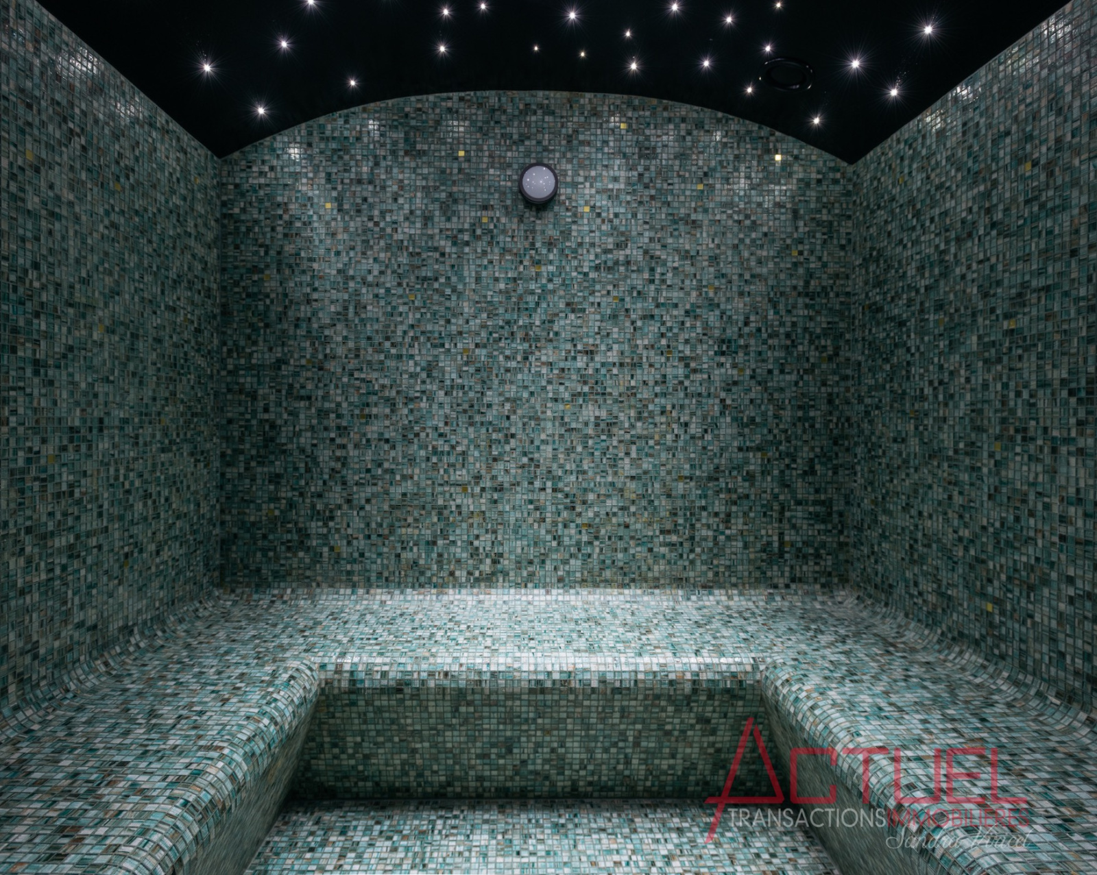Grande cuisine entièrement équipée, deux chambres avec salle d'eau privative et au niveau inférieur une suite parentale, une chambre avec salle de bains et espace hammam.