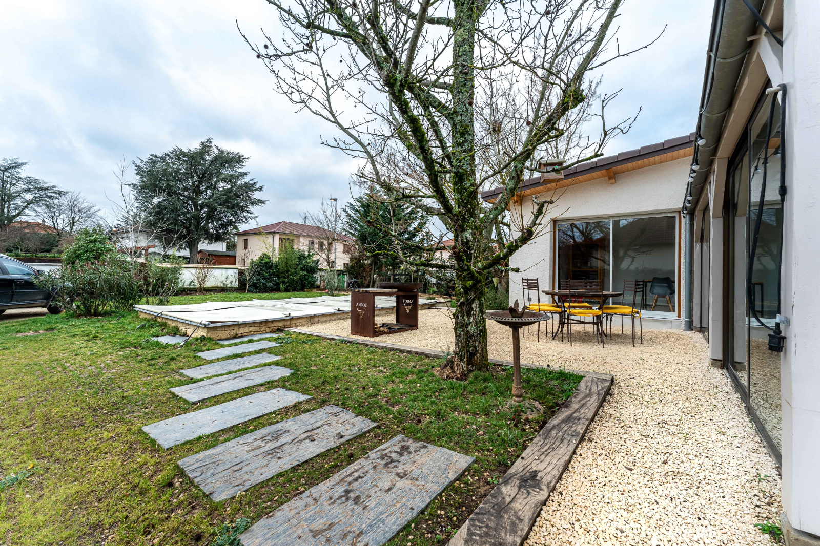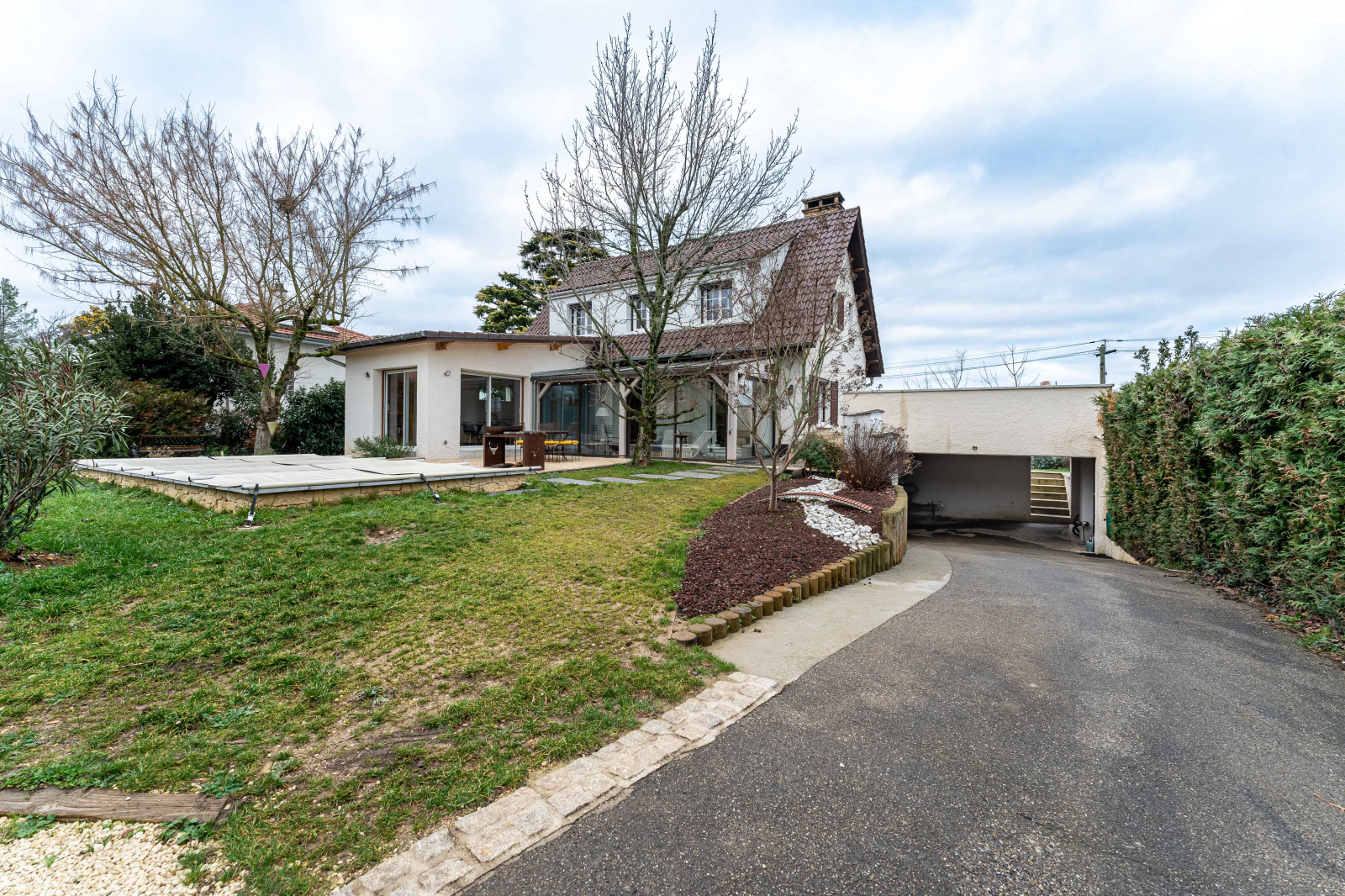 Le jardin, entièremement clos, est agrémenté d'une piscine, et plusieurs terrasses.