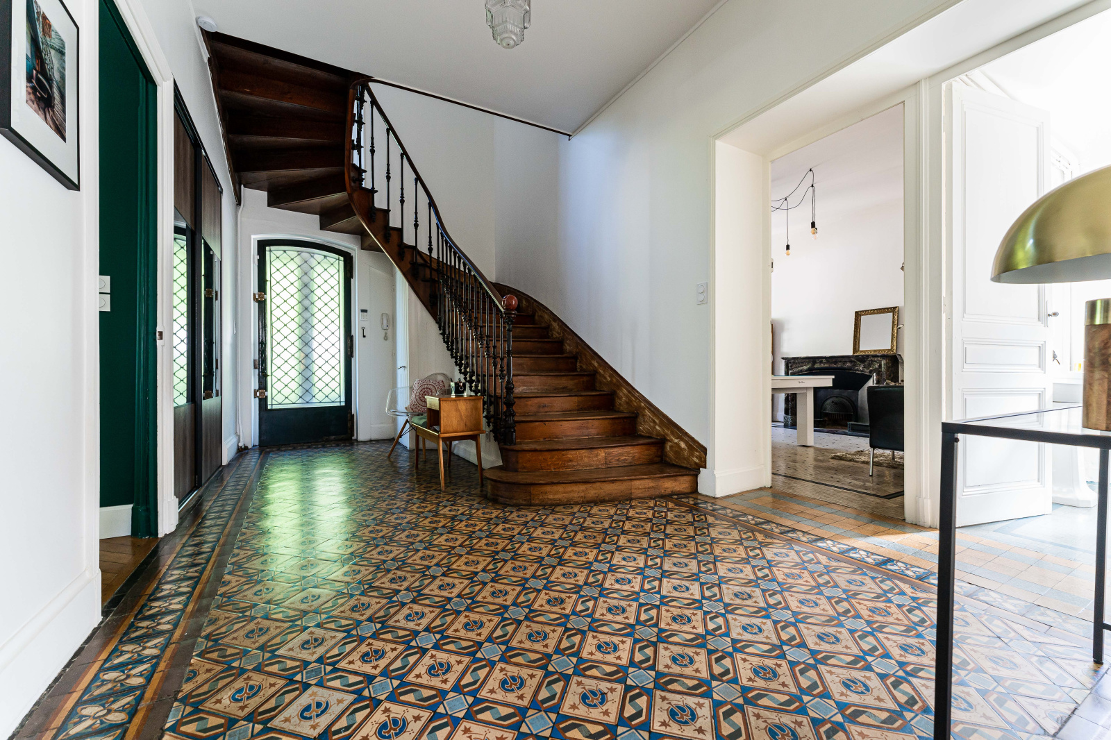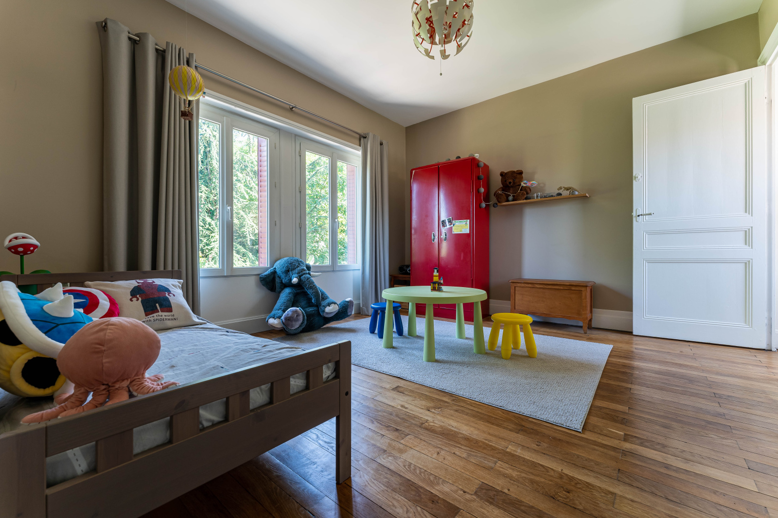 Cette maison de la fin des années 1800, se compose au rez de chaussée d'une belle entrée avec placard qui dessert : un salon, une salle à manger donnant sur une belle véranda, une cuisine entièrement équipée avec cellier, un wc et un grand bureau avec cheminée. La majesteuse montée d'escalier vous mène au premier niveau. Il se compose d'une première chambre avec salle d'eau, d'une chambre d'amis, d'une salle d'eau indépendante et d'une suite parentale avec sa salle de bain et son dressing ouvrant sur un balcon qui domine le parc. Le dernier niveau sous combles accueille une chambre, une salle d'eau et une grande salle de jeu ( à renover). Enfin, au sous sol, se trouvent, plusieurs caves, chaufferie ....