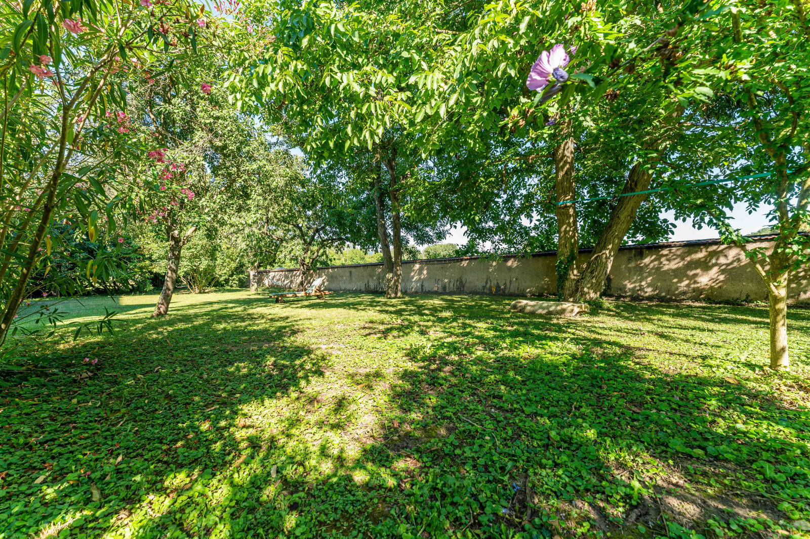 Côté extérieur, un beau terrain plat arboré et piscinable.