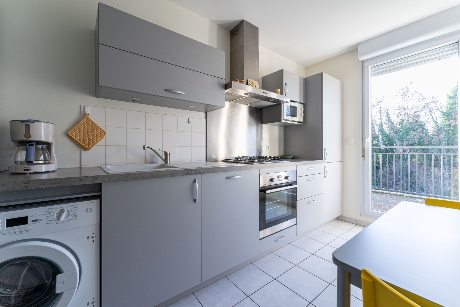 Il se compose d'une entrée avec placards desservant un séjour ouvrant sur une belle terrasse plein ciel de 14 m², une cuisine indépendante toute équipée (avec possibilité d'ouverture) donnant elle aussi sur la terrasse.