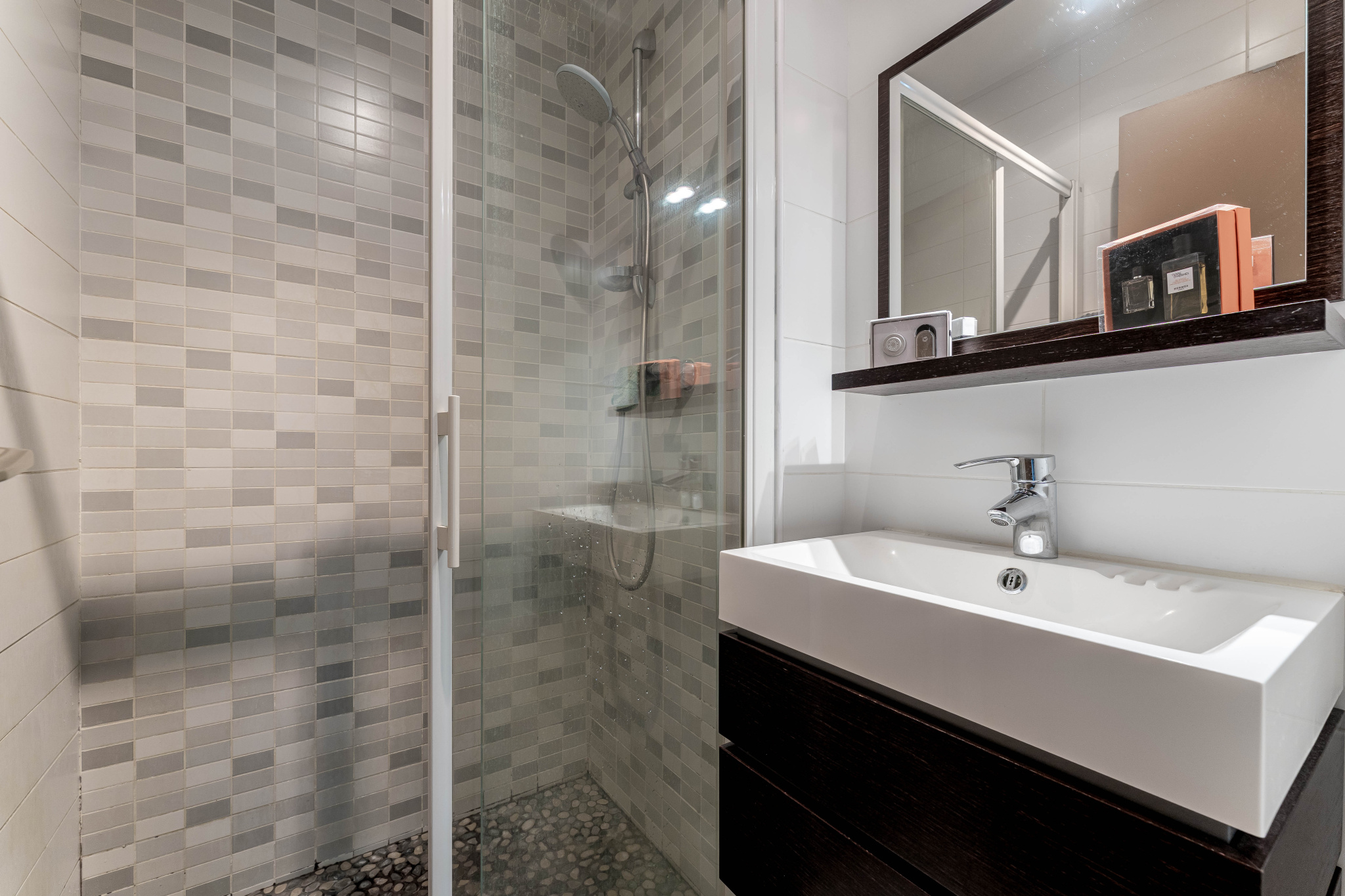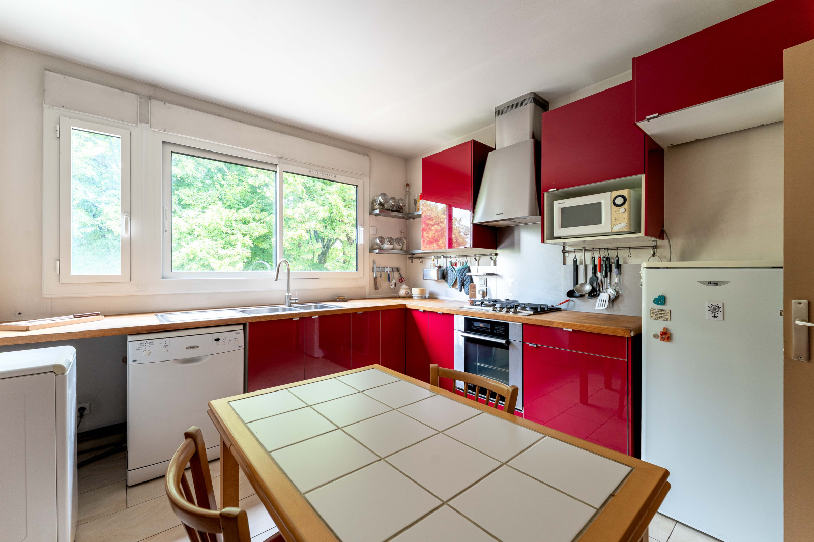 L’entrée, spacieuse et équipée de rangements, s’ouvre sur un vaste séjour lumineux donnant accès à une terrasse de 20 m² exposée plein sud. La cuisine, indépendante et entièrement équipée, complète agréablement l’espace de vie.