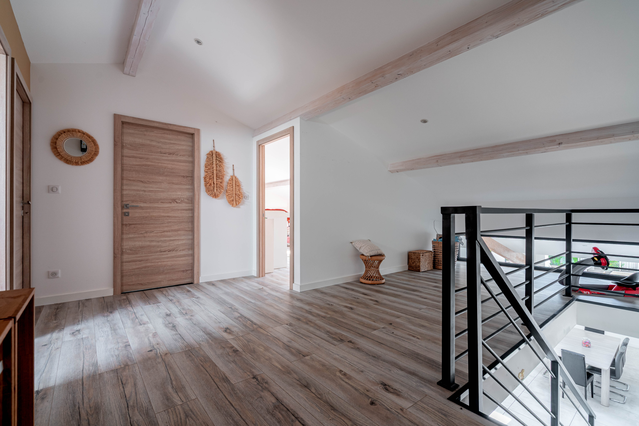 A l'étage, une mezzanine pourra faire office de bureau, de salle de jeu ou de 4ème chambre. Elle dessert 3 belles chambres mansardées et une grande salle de bain.