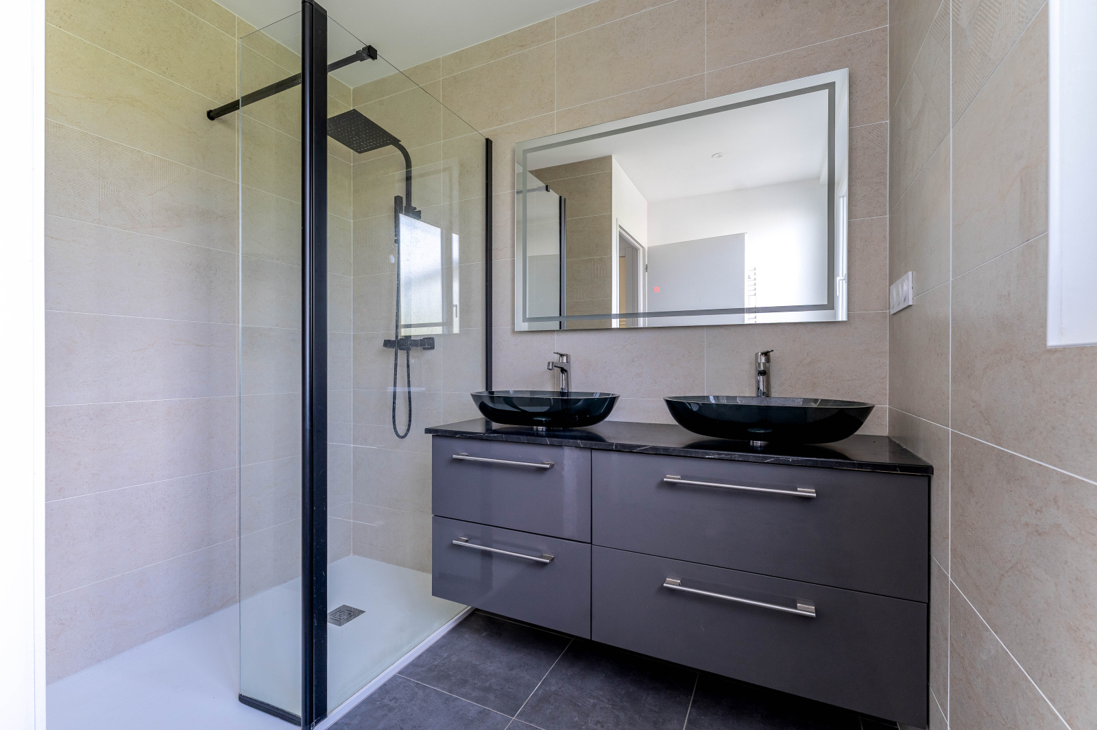 En entrant dans la maison, vous découvrirez un beau volume de vie avec sa cuisine ouverte aménagée, très fonctionnelle, donnant l'accès à sa véranda et au jardin. Sur ce niveau, vous profiterez d'une chambre avec placard, deux salles d’eau ainsi que d’un premier WC indépendant