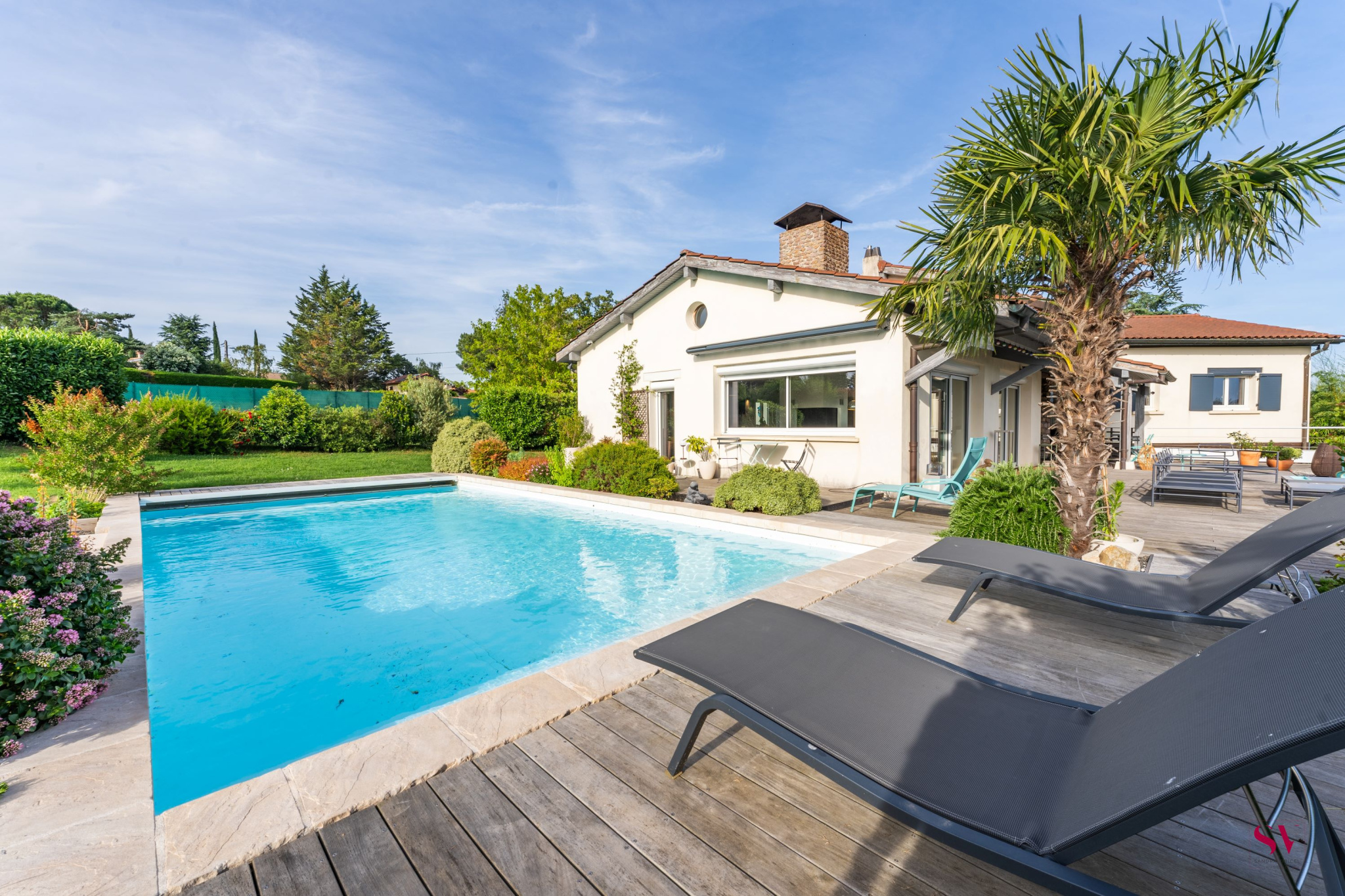 Côté extérieur, un grand terrain de 2 864 m² clos et arboré, un espace piscine (11 m x 5m) et des places de stationnement.