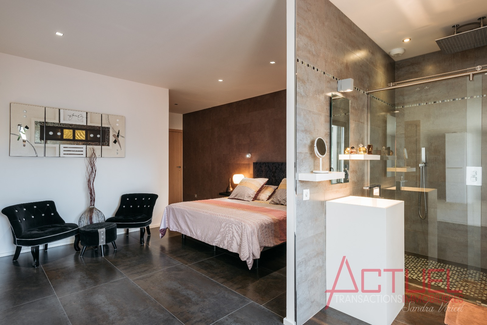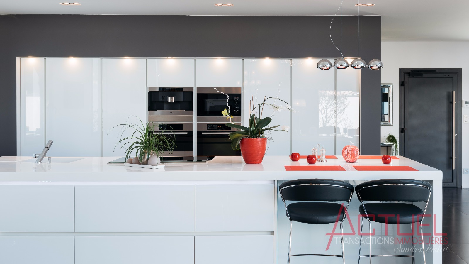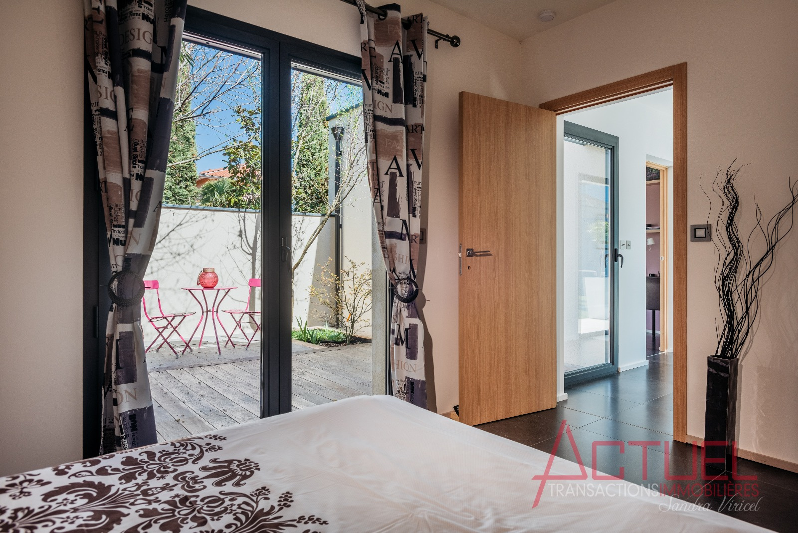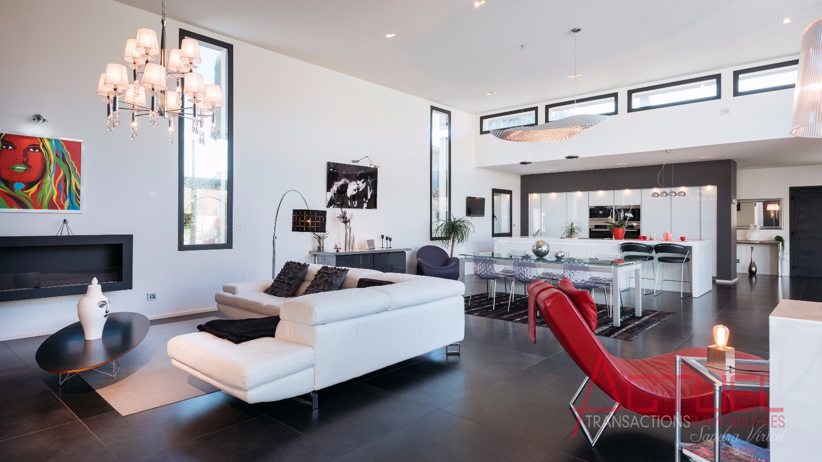Orientée autour d'un patio, sans vis à vis, et baignée de lumière, la maison entièrement de plain-pied se compose d'une superbe pièce de vie de 90 m2 avec une cuisine haut de gamme et cellier, 4 mètres de hauteur sous plafond.Uune coursive distribue les 2 chambres, la suite parentale, une salle de bain et un bureau.