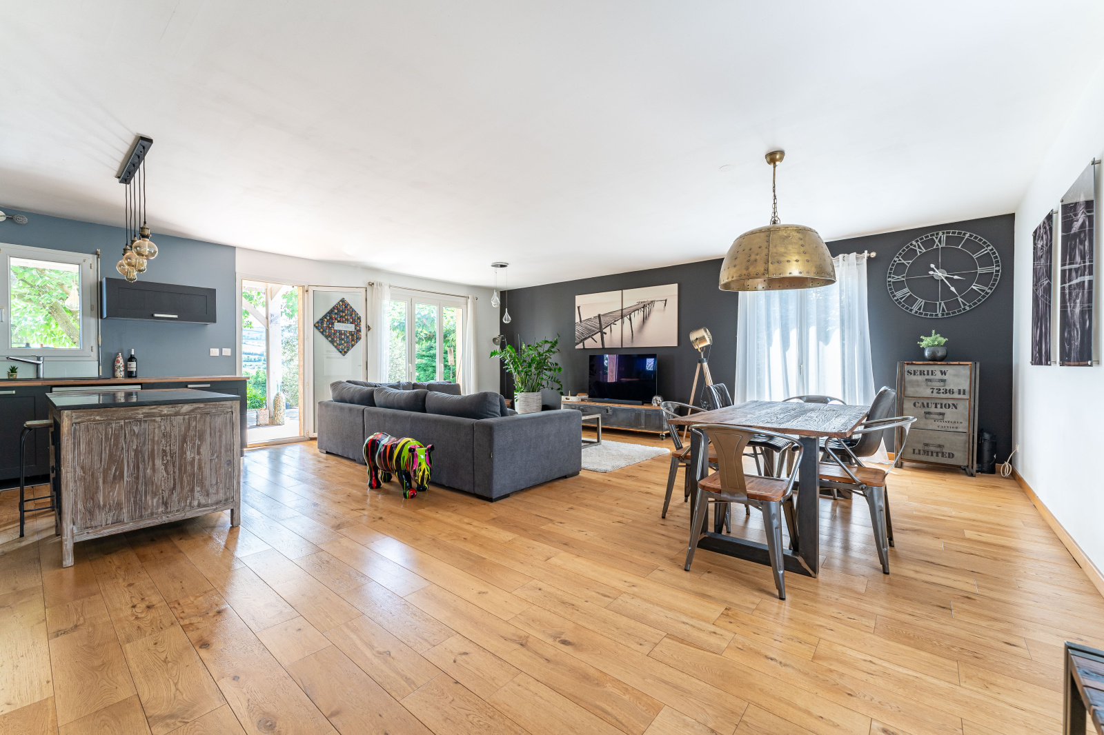 Vaugneray (69670)L'agence Sandra Viricel Immobilier a le plaisir de vous présenter au sein d'un environnement pavillonnaire cette jolie maison de 6 pièces d'une surface habitable de 126.26m2 + garage de 22m2 le tout édifié sur son terrain arboré et clos de 966m2.
